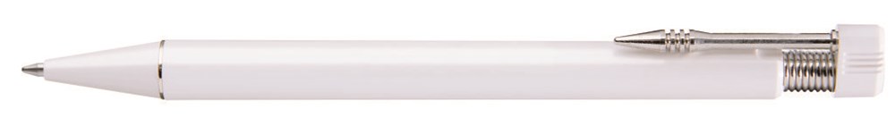 Druckkugelschreiber mit vernickeltem Metallclip sowie beweglichem Drückerkopf auf vernickelter Metallfeder.