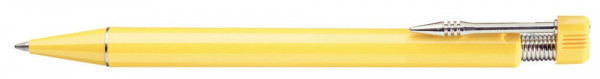 Druckkugelschreiber mit vernickeltem Metallclip sowie beweglichem Drückerkopf auf vernickelter Metallfeder.