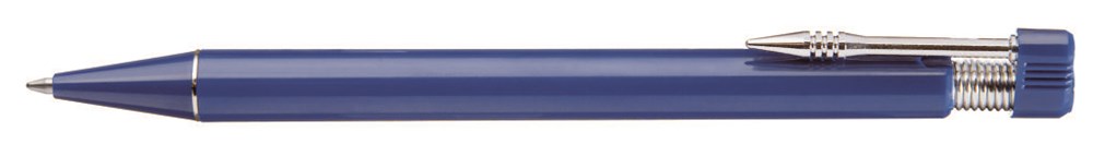 Druckkugelschreiber mit vernickeltem Metallclip sowie beweglichem Drückerkopf auf vernickelter Metallfeder.