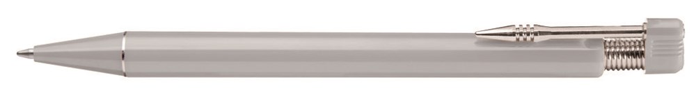 Druckkugelschreiber mit vernickeltem Metallclip sowie beweglichem Drückerkopf auf vernickelter Metallfeder.