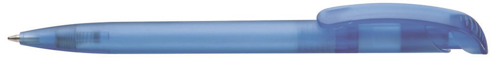 Druckkugelschreiber mit transparent gefrostetem Gehäuse und Bogenclipdrücker.