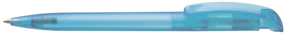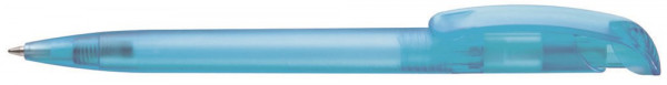 Druckkugelschreiber mit transparent gefrostetem Gehäuse und Bogenclipdrücker.
