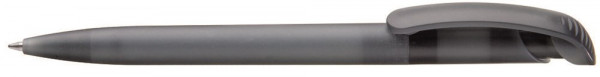 Druckkugelschreiber mit transparent gefrostetem Gehäuse und Bogenclipdrücker.