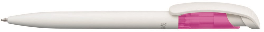 Druckkugelschreiber mit Schaftunterteil und Clip aus 100% nachwachsendem und kompostierbarem Werkstoff. Schaftoberteil aus gefrostetem ABS Kunststoff in verschiedenen Farben.