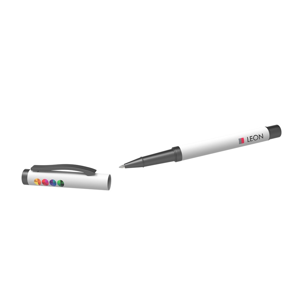 Der Pen Leon ist ein Schreibstift mit Kappe, der in schwarz und weiß erhältlich ist. Das Gehäuse ist aus Aluminium mit einer Softtouch-Oberfläche. Dadurch hat der Stift eine sehr angenehme Haptik.