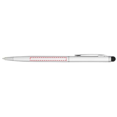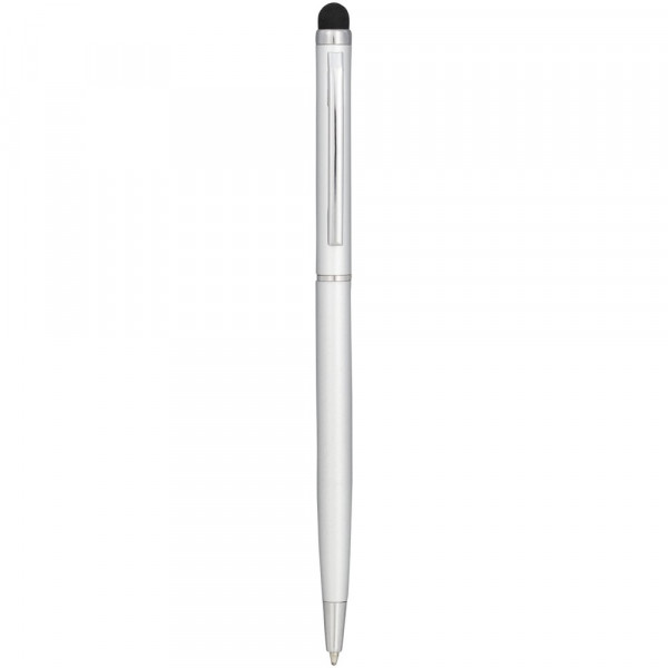 Schlanker Kugelschreiber aus satiniertem Aluminium mit Drehmechanismus und Stylus.