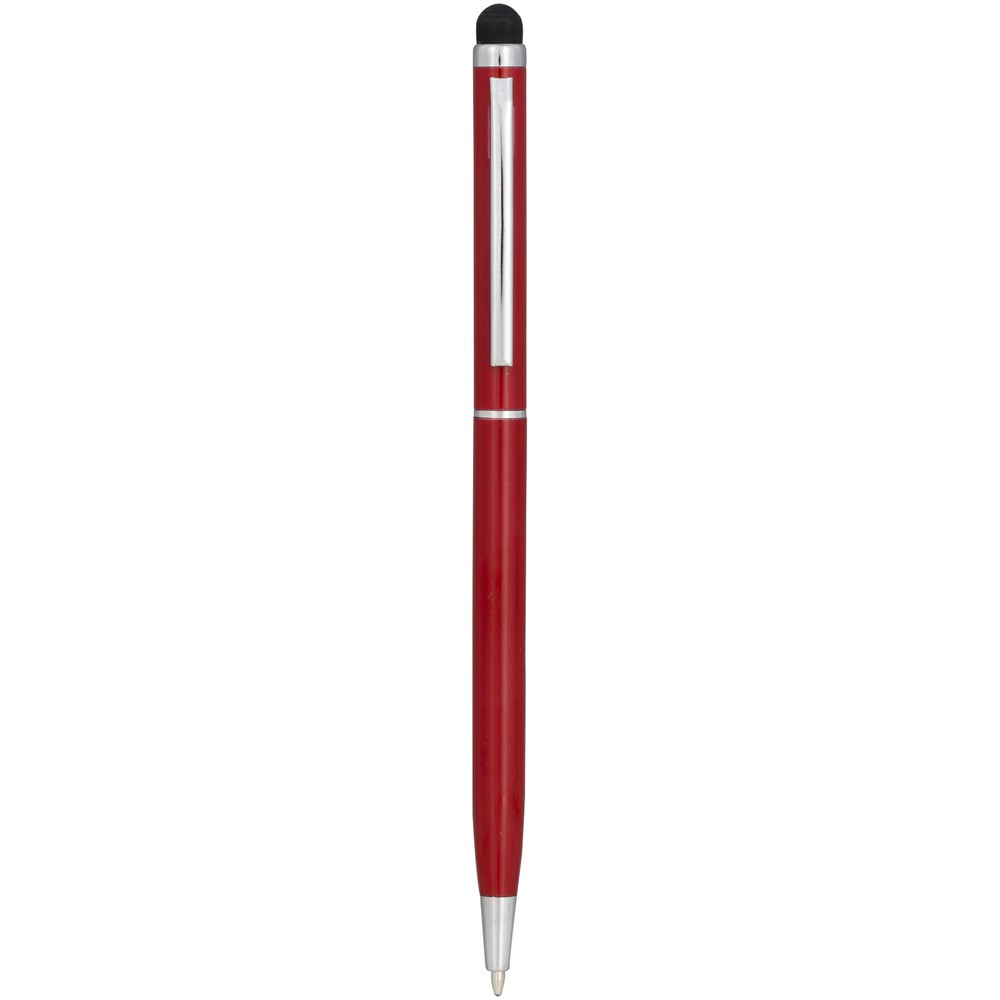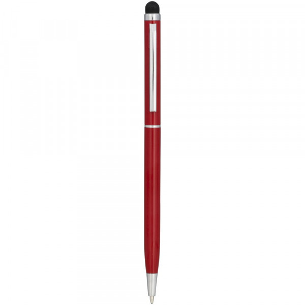 Schlanker Kugelschreiber aus satiniertem Aluminium mit Drehmechanismus und Stylus.