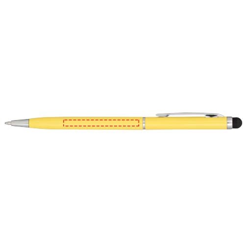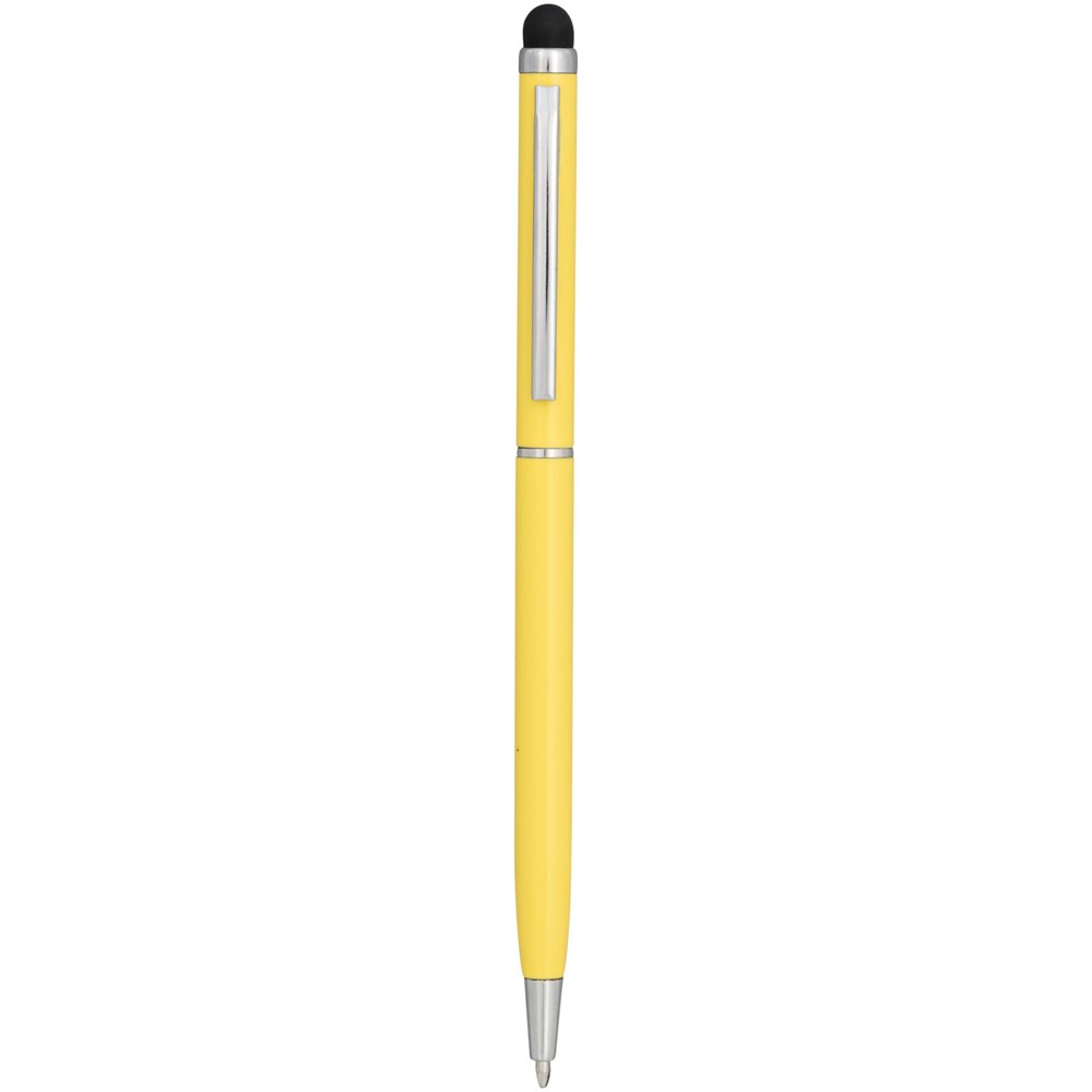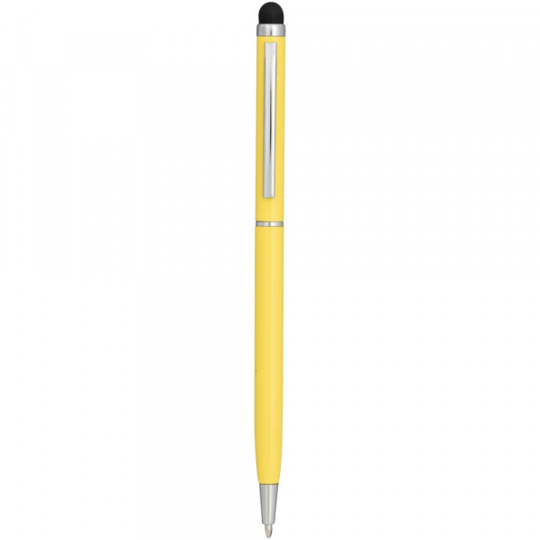 Schlanker Kugelschreiber aus satiniertem Aluminium mit Drehmechanismus und Stylus.