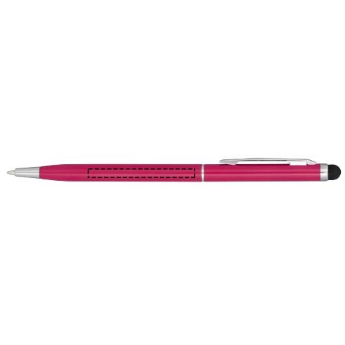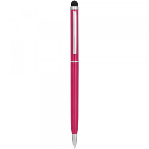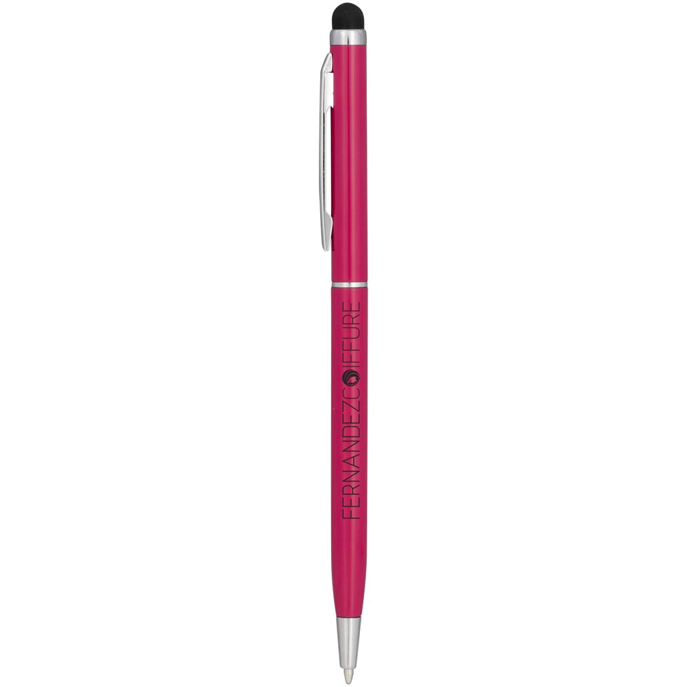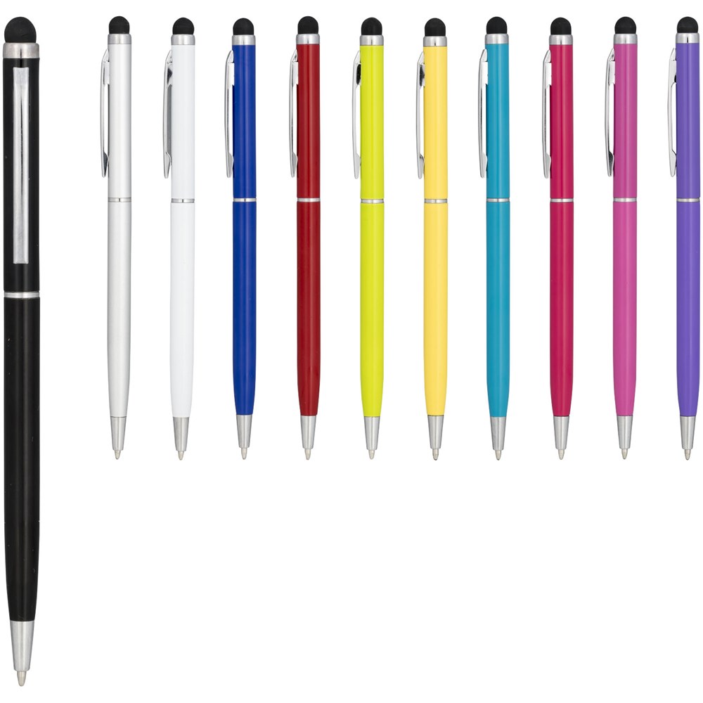 Schlanker Kugelschreiber aus satiniertem Aluminium mit Drehmechanismus und Stylus.