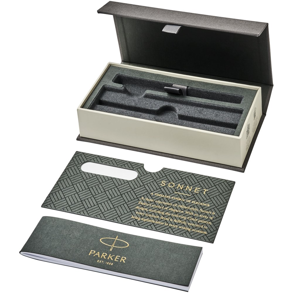 Mit einer Reihe von Designs, einschließlich der dauerhaften Ciselé-Muster, wird jede komplizierte Detail geschickt ausgeführt, um Raffinesse zu jedem Schreiben Gelegenheit zu bringen. Inkl. Parker Geschenkbox. Lieferung inkl. patentierter QuinkFlow Kugelschreibermine. Exklusives Design.