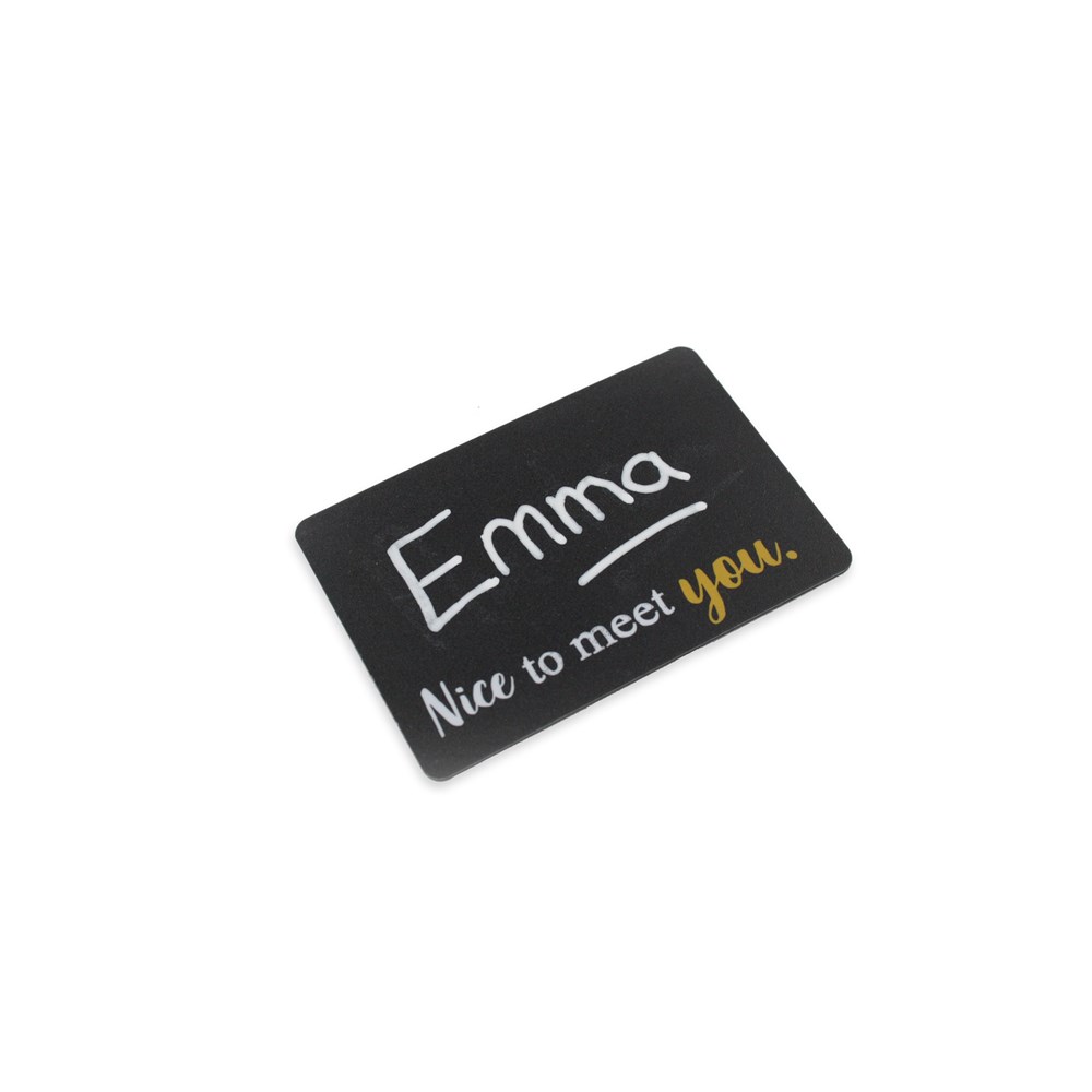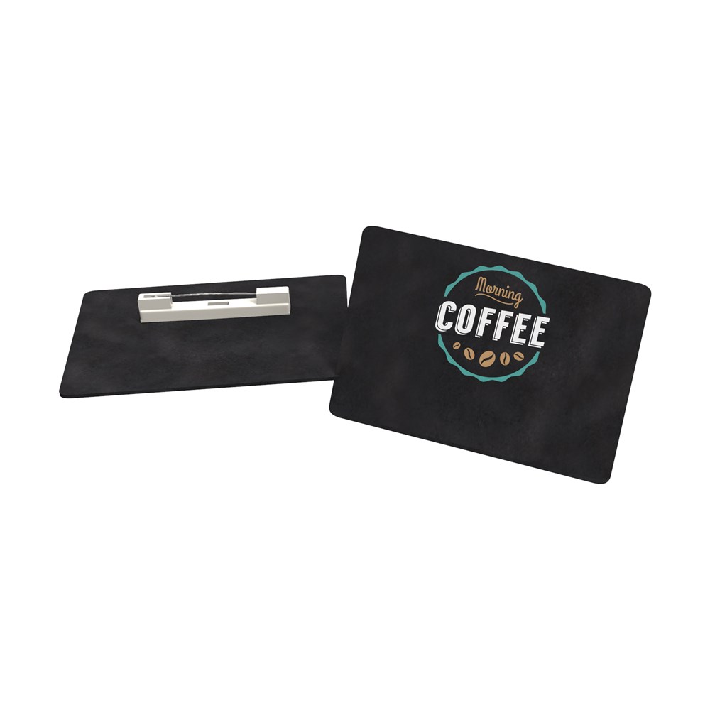 Bei dem Badge Chalkboard handelt es sich um ein wiederverwendbares Namensschild in Tafeloptik. Mit einem flüssigen Kreidestift lassen sich Name oder Botschaft auftragen und man erzielt einen sofortigen Tafeleffekt. Die Kreide lässt sich leicht mit einem feuchten Tuch entfernen und das Board kann danach wieder neu beschrieben werden. Jeder Bestellung liegt der Kreidestift bei. Alternativ kann die "Tafel" mit einem Vollfarbdruck personalisiert werden.