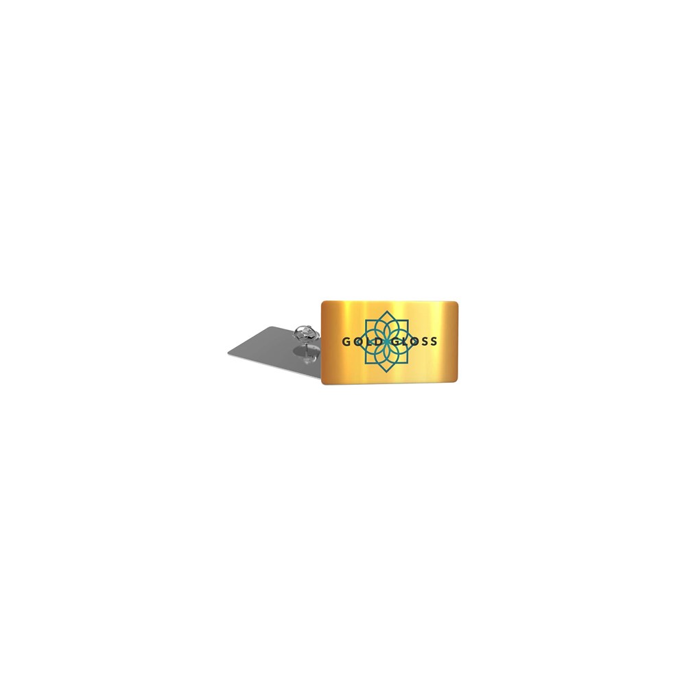 Der Pin Slim ist ein glänzender Metallpin, der mit einem luxuriösen Doming versehen ist. Diese Pins sind in 4 verschiedenen Formen erhältlich: oval, rechteckig, rund und quadratisch. An dem Metallrücken des Pins befindet sich ein Dorn mit Schmetterlingsverschluss.