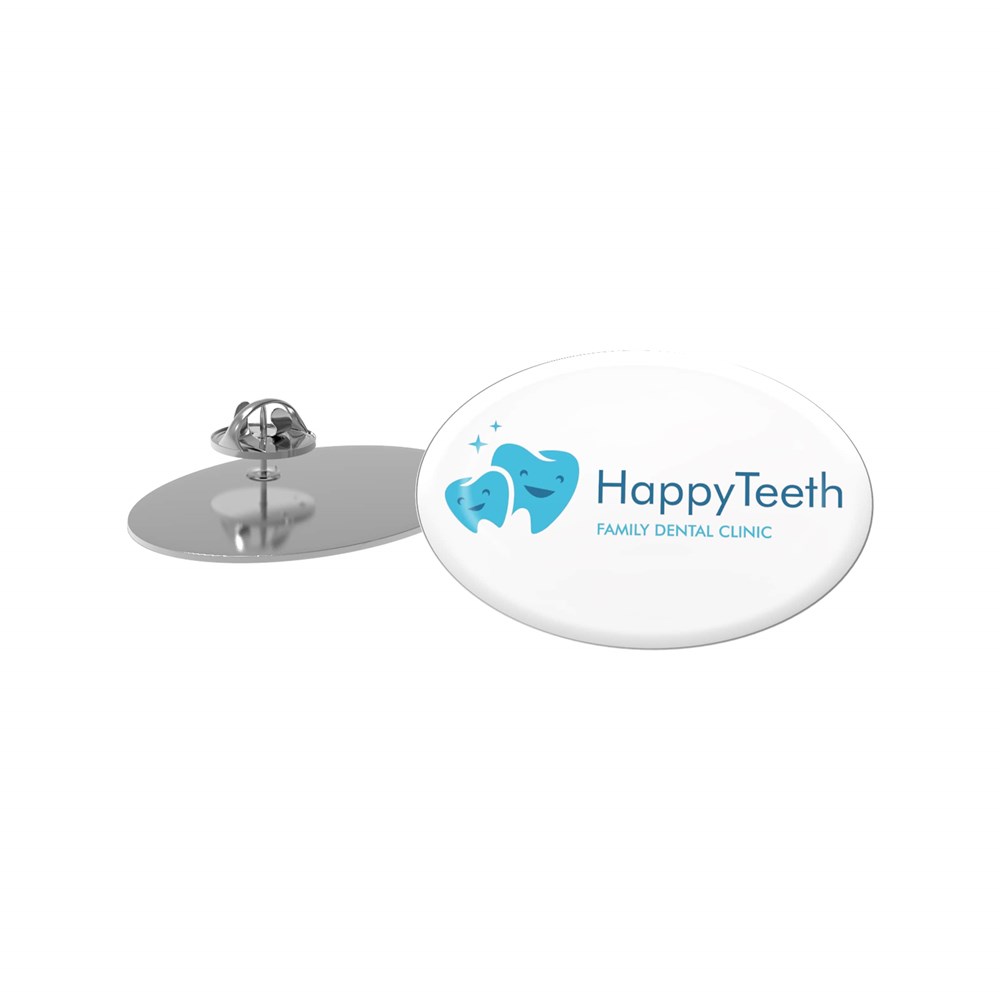 Pin Slim Oval, 28 x 19 mm Weiss mit 4C Doming