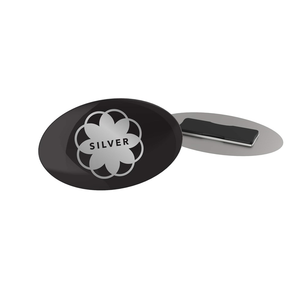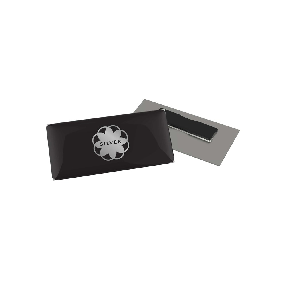 Badge Megan Metal Round 50 mm, Needle, Doming in full color Silber mit 4C Doming
