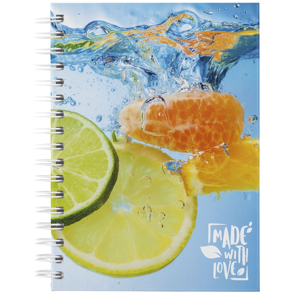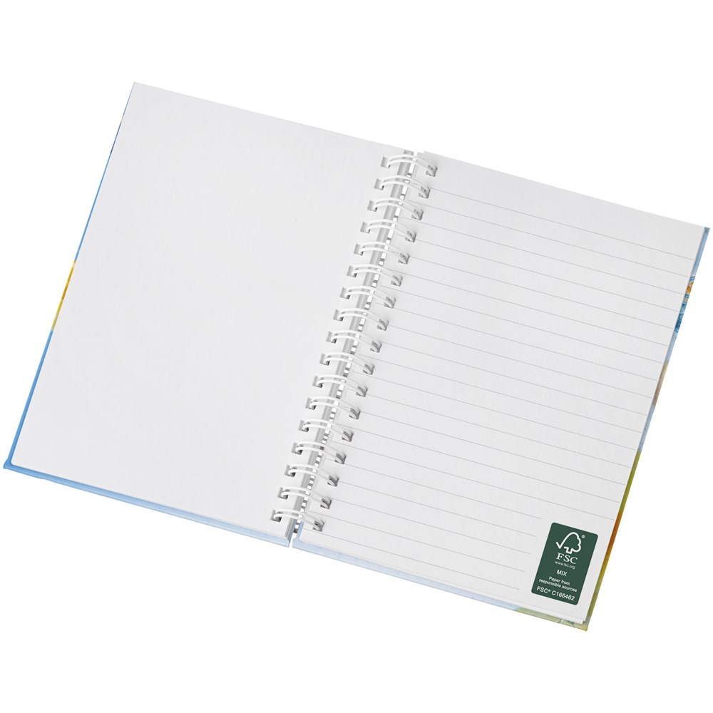 Verfügt über 80 Blatt Blankopapier (80 g/m2) und eine schwarze oder weiße Spiralbindung. Erhältlich in den Größe A4, A5 und A6. Vollfarbdruck auf beiden Seiten des Umschlags sowie auf jedem Blatt möglich.