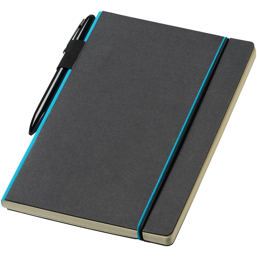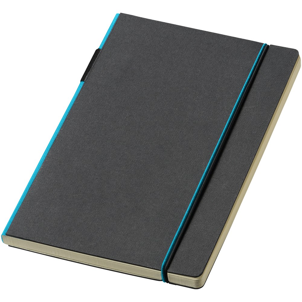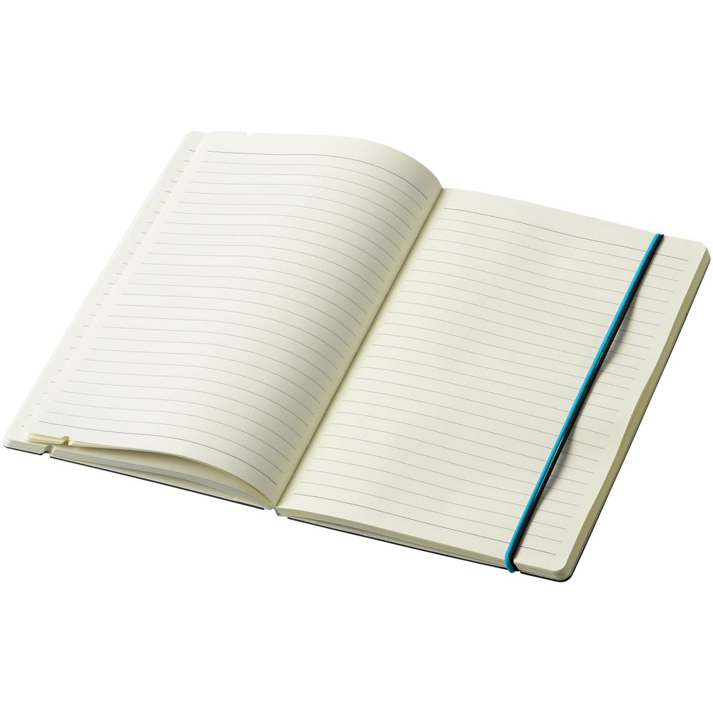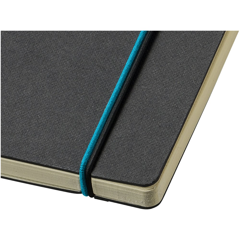 Ein farbiger Rücken und ein Gummiverschluss geben diesem klassischen schwarzen... mehr