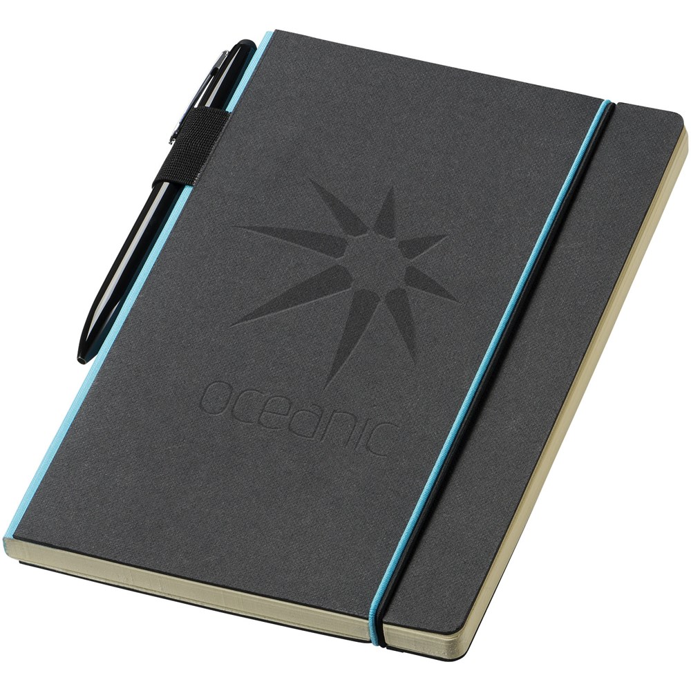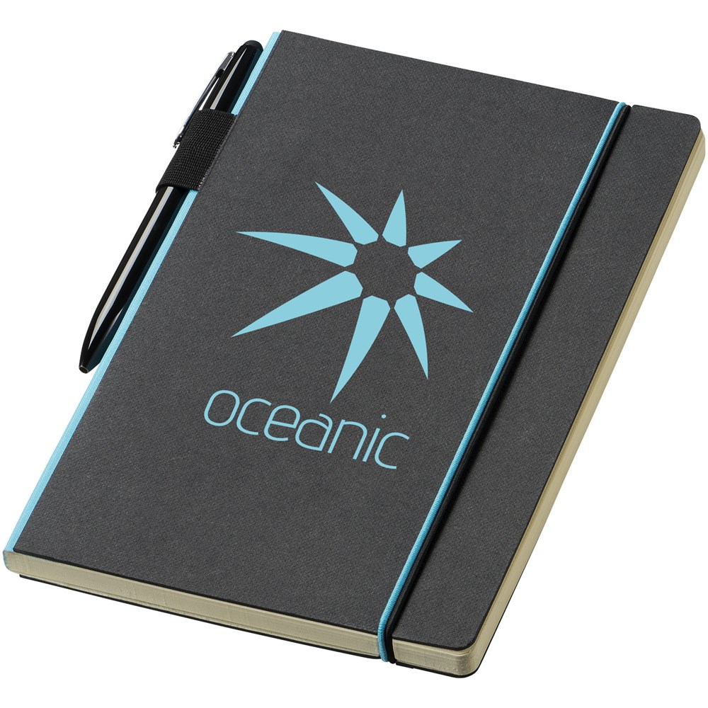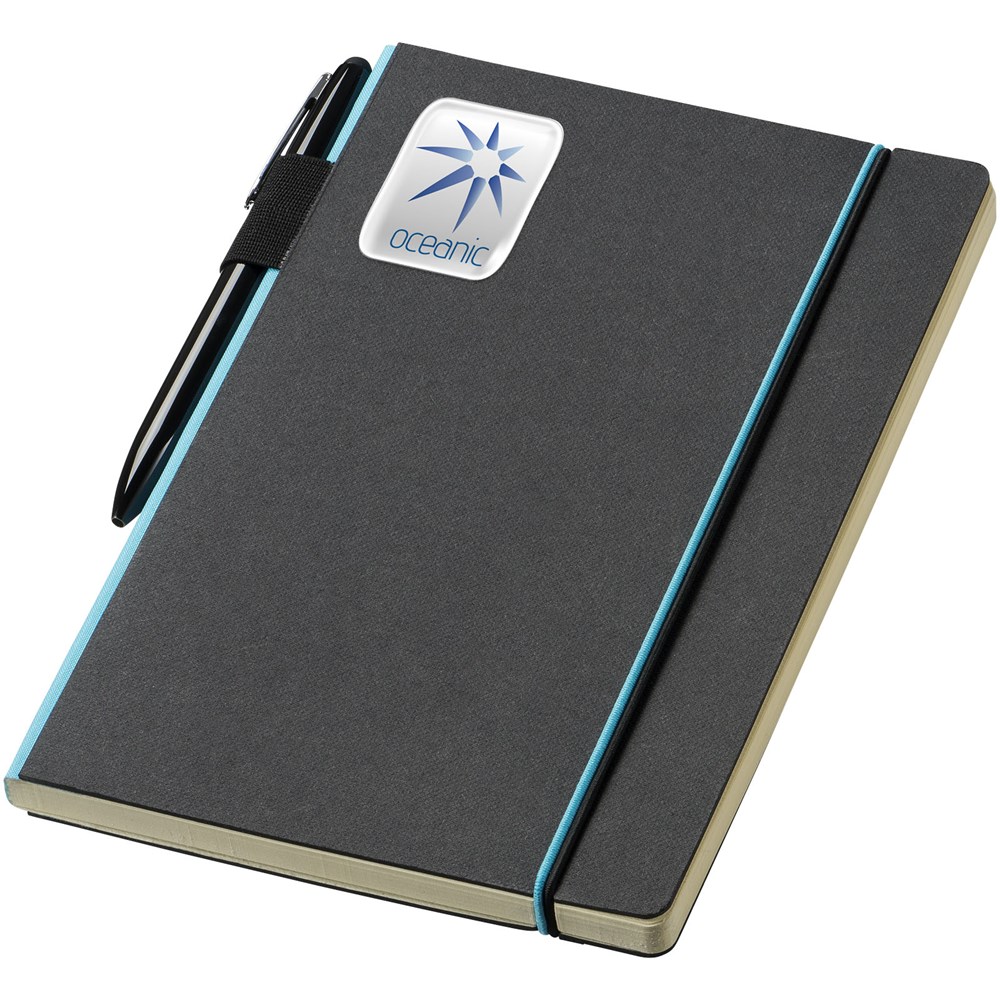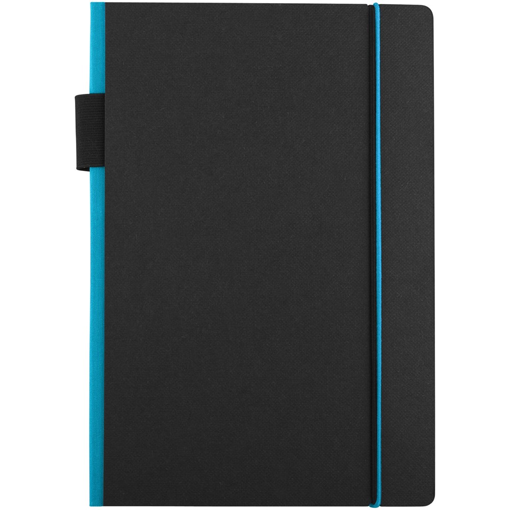 Ein farbiger Rücken und ein Gummiverschluss geben diesem klassischen schwarzen... mehr