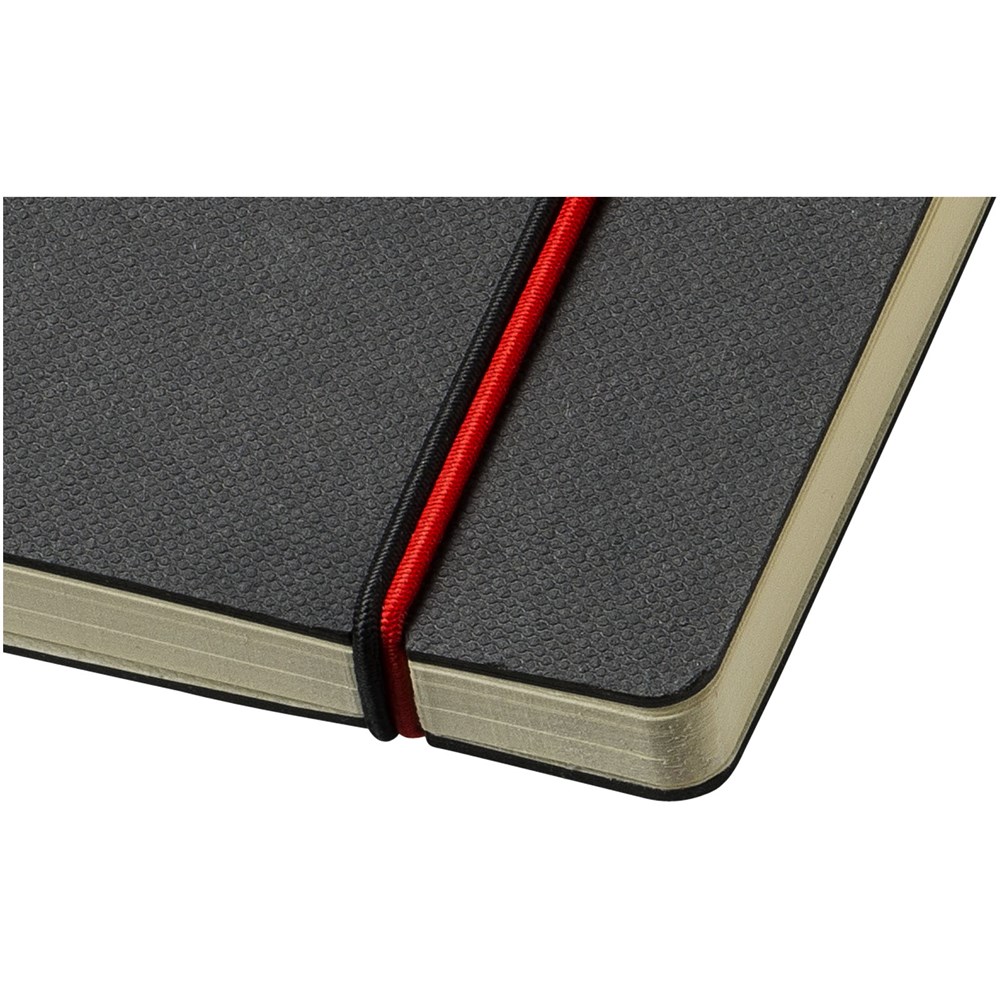 Ein farbiger Rücken und ein Gummiverschluss geben diesem klassischen schwarzen... mehr