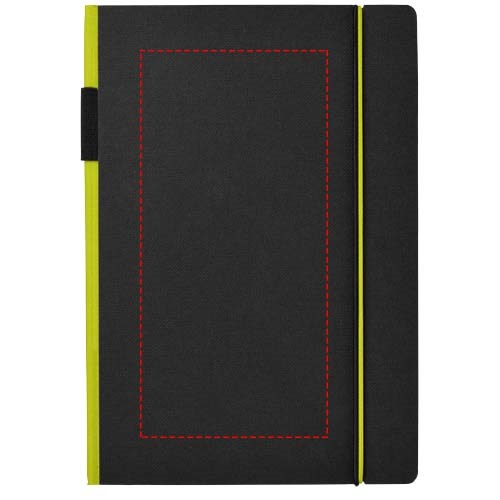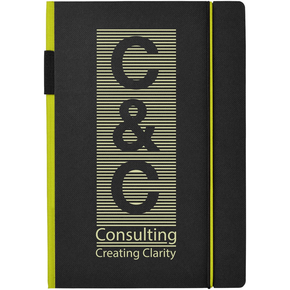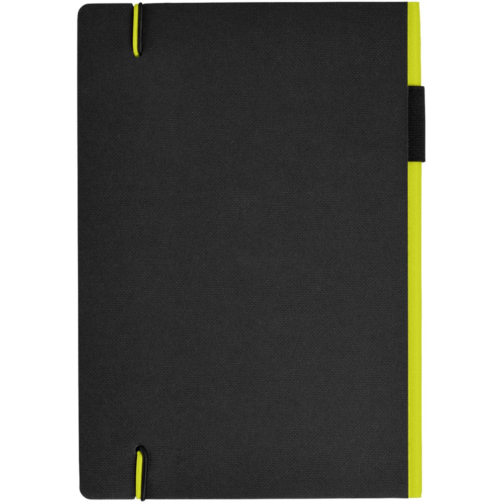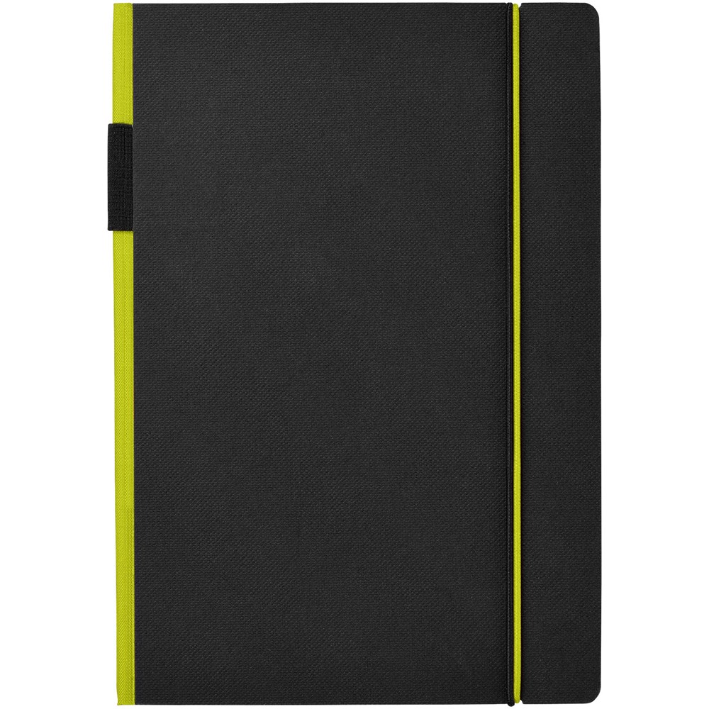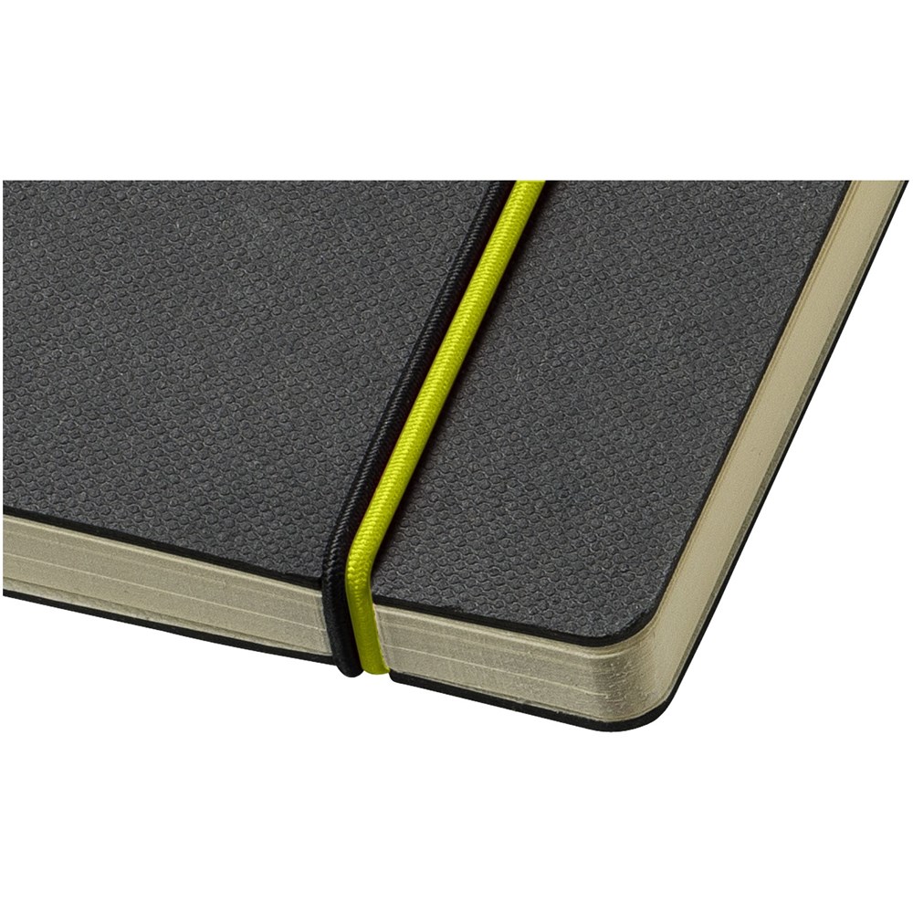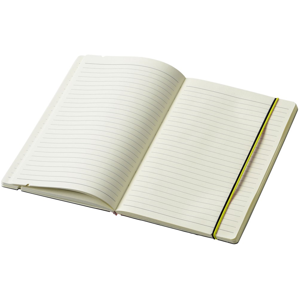 Ein farbiger Rücken und ein Gummiverschluss geben diesem klassischen schwarzen... mehr