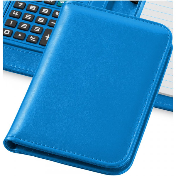 Notizbuch mit 8 stelligem Rechner und A6 Notizbuch mit 20 Blatt (70 g/m²) liniert und Stiftschlaufe. Batterie mitgeliefert und eingelegt.