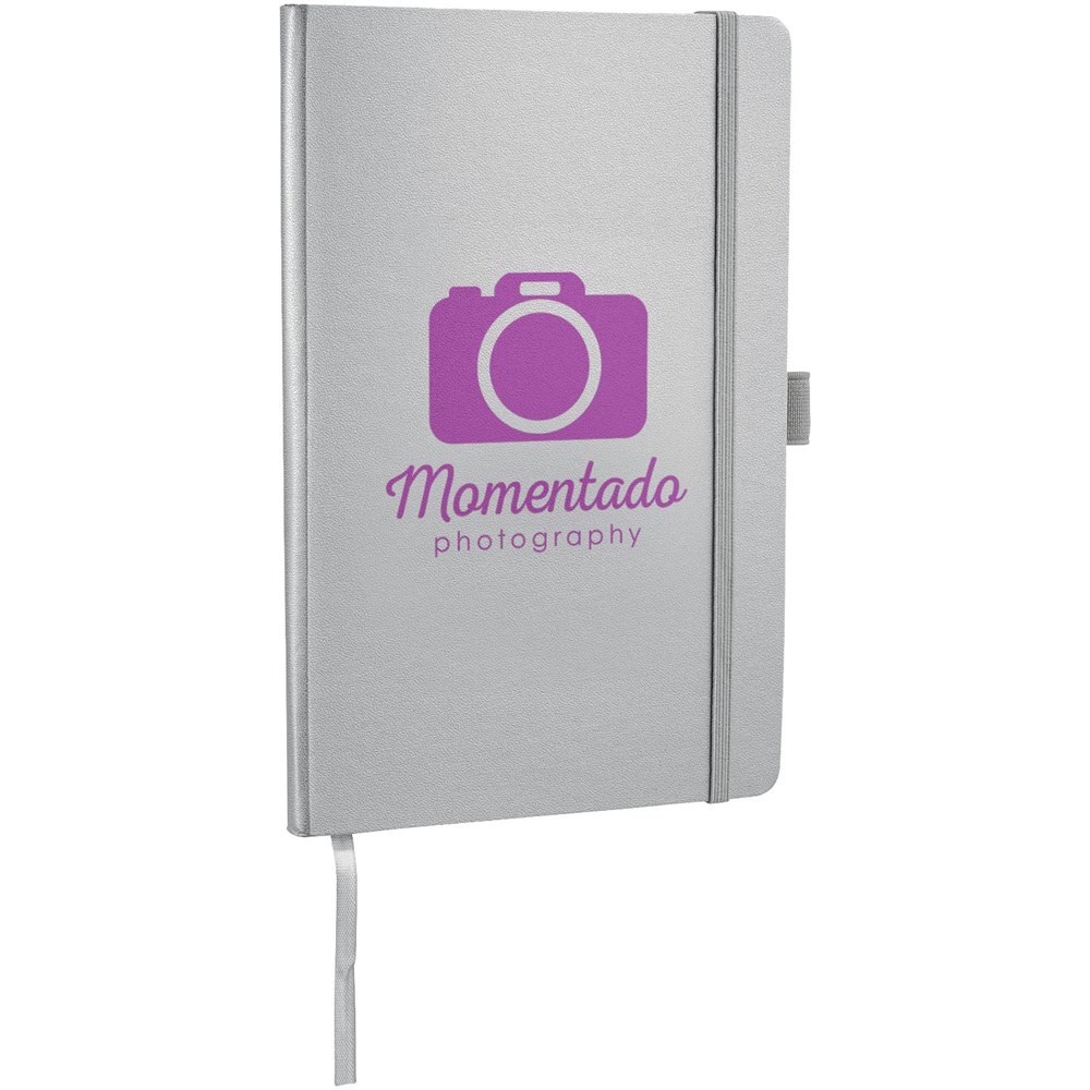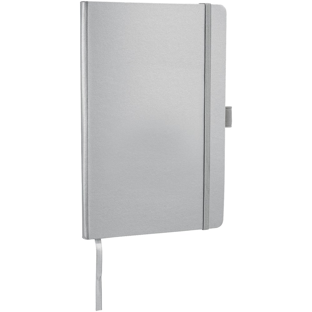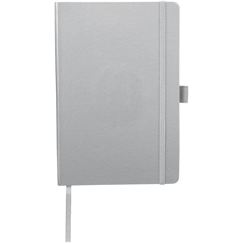 A5 Notizbuch mit rückseitiger Falte für einfaches Umblättern. Inklusive Gummiband zum Verschließen, Leseband und 80 Blatt (80 g), liniertem Papier.