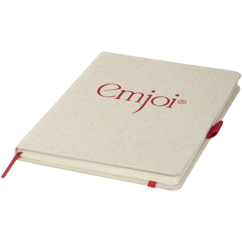 A5 Canvas Notizbuch mit farbigem, elastischen Verschluss und Leseband. Inkl. elastischer Stiftschlaufe und 80 Blatt (70 g/m²) liniert.