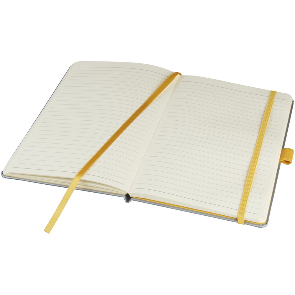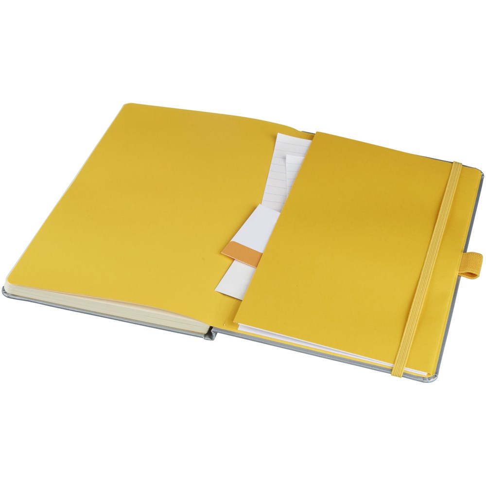 Hardcover Lifestyle Notizbuch (A5) für den kreativen Profi und seine Notizen, Skizzen oder Kekritzel. Das verschiedenfarbige Papier mit farbig passendem, elastischen Verschluss und Farbbandmarker verleiht dem Notizbuch einen extra frischen Reiz. Weitere Eigenschaften sind 40 Blatt (80 g/m²) cremefarben, liniert und 40 Blatt (80 g/m²) blank sowie eine Dokumententasche, um lose Noizen zu verstauen. Verpackt in einer weißen Hülle.
