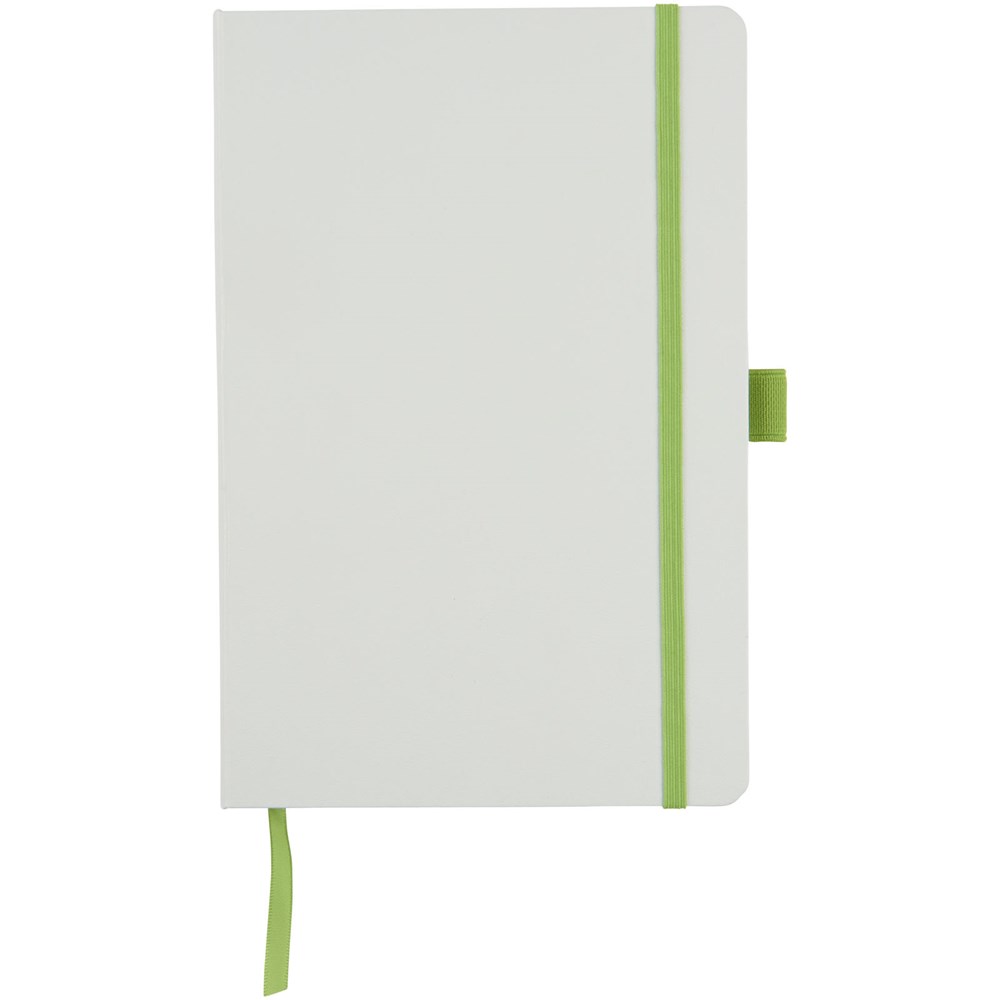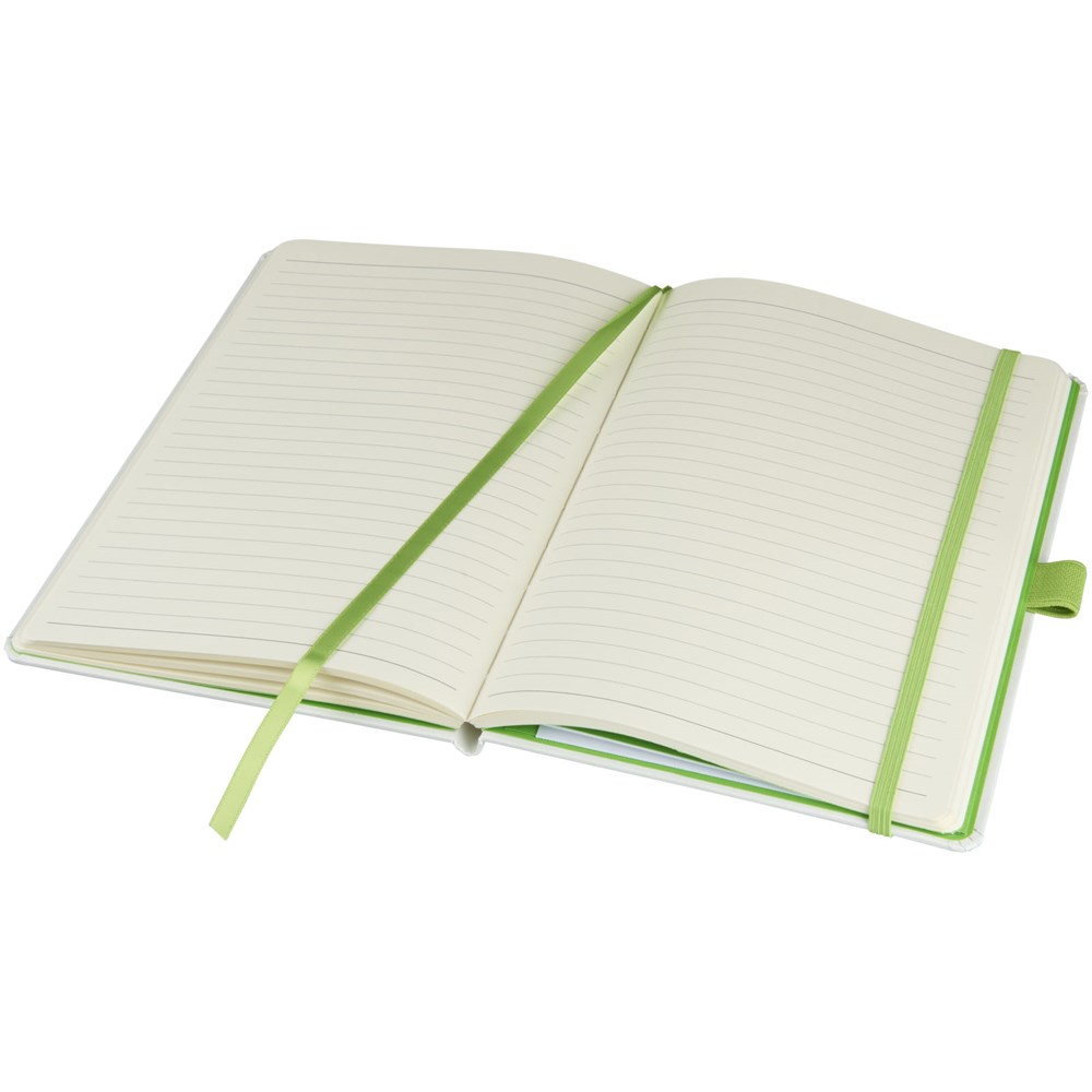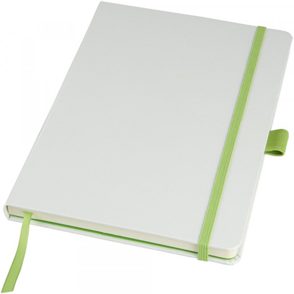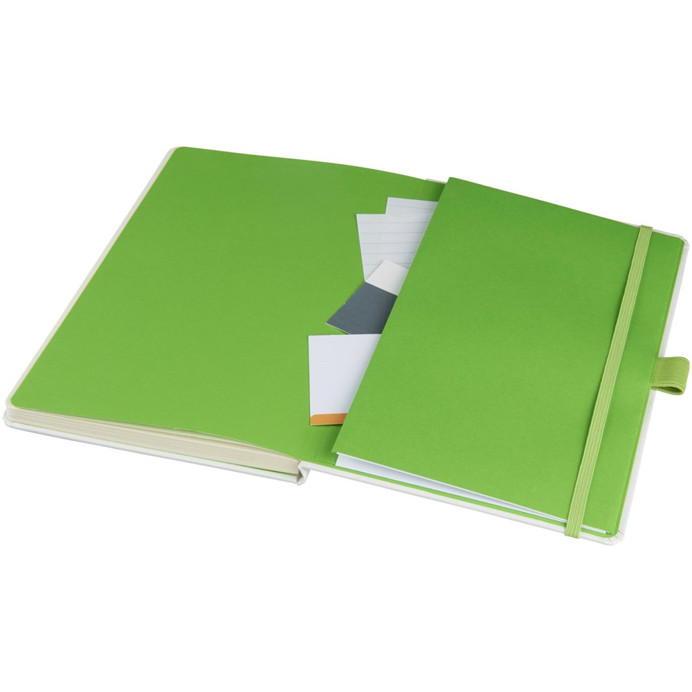 Hardcover Lifestyle Notizbuch (A5) für den kreativen Profi und seine Notizen, Skizzen oder Kekritzel. Das verschiedenfarbige Papier mit farbig passendem, elastischen Verschluss und Farbbandmarker verleiht dem Notizbuch einen extra frischen Reiz. Weitere Eigenschaften sind 40 Blatt (80 g/m²) cremefarben, liniert und 40 Blatt (80 g/m²) blank sowie eine Dokumententasche, um lose Noizen zu verstauen. Verpackt in einer weißen Hülle.