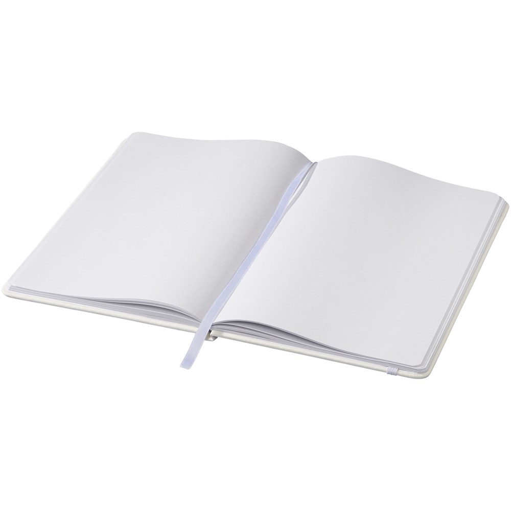 A5 Notizbuch mit farblich passendem elastischen Verschluss und Leseband. Inkl. 96 Blatt (60 g/m²), blanko.