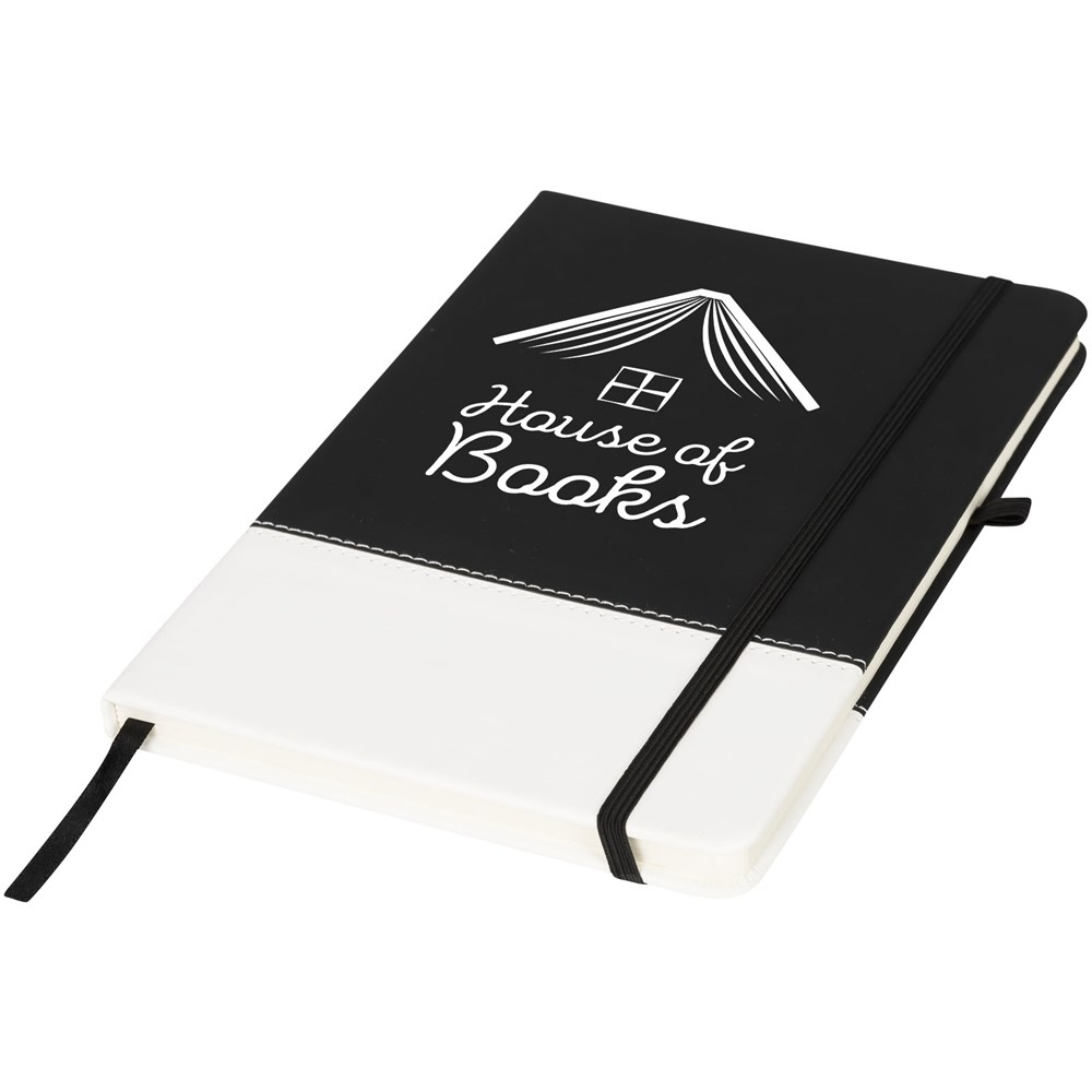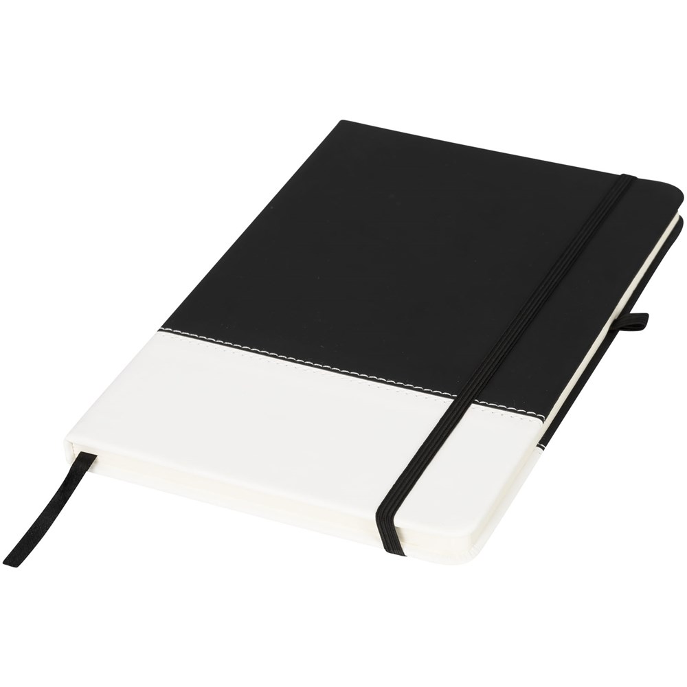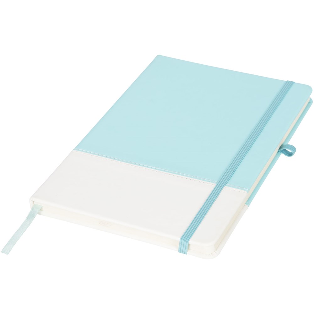 A5 Notizbuch mit zweifarbigem Farbblock-Cover. Enthält 80 Blatt (70 g/m²) liniertes Papier. mehr