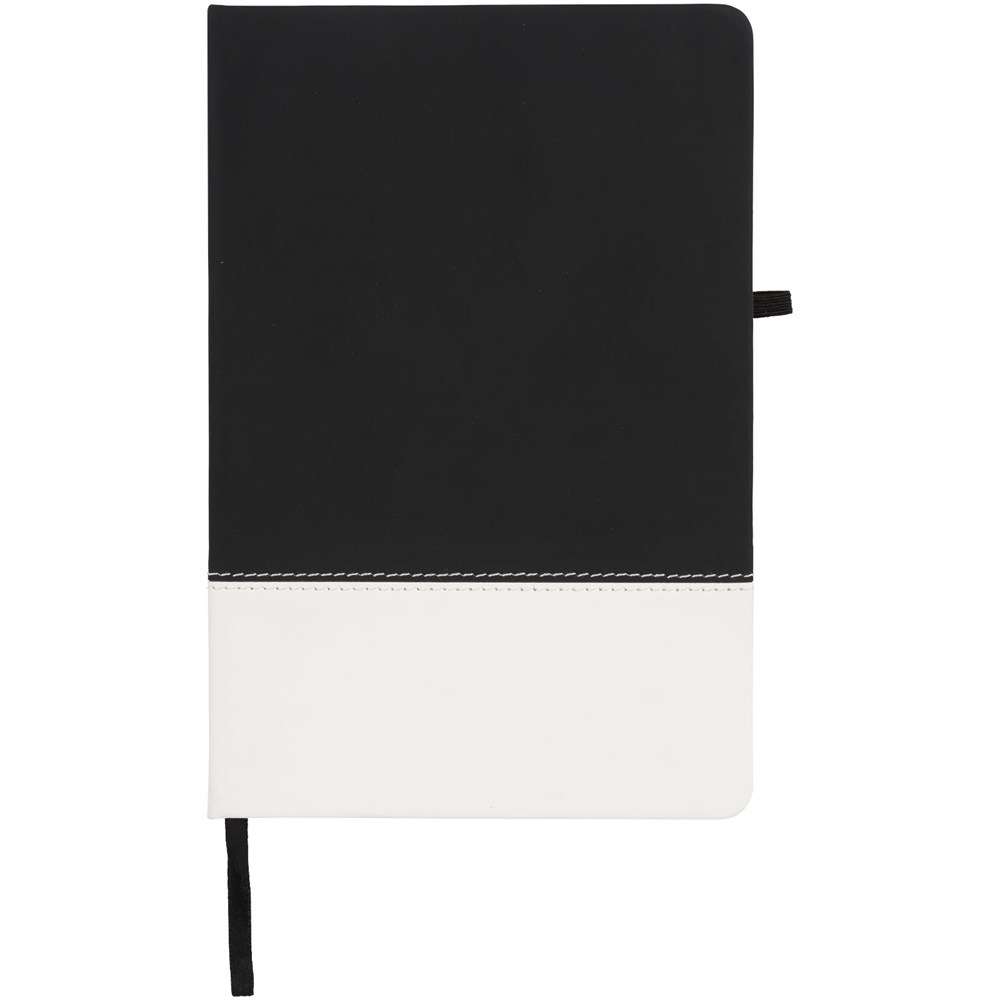 A5 Notizbuch mit zweifarbigem Farbblock-Cover. Enthält 80 Blatt (70 g/m²) liniertes Papier.