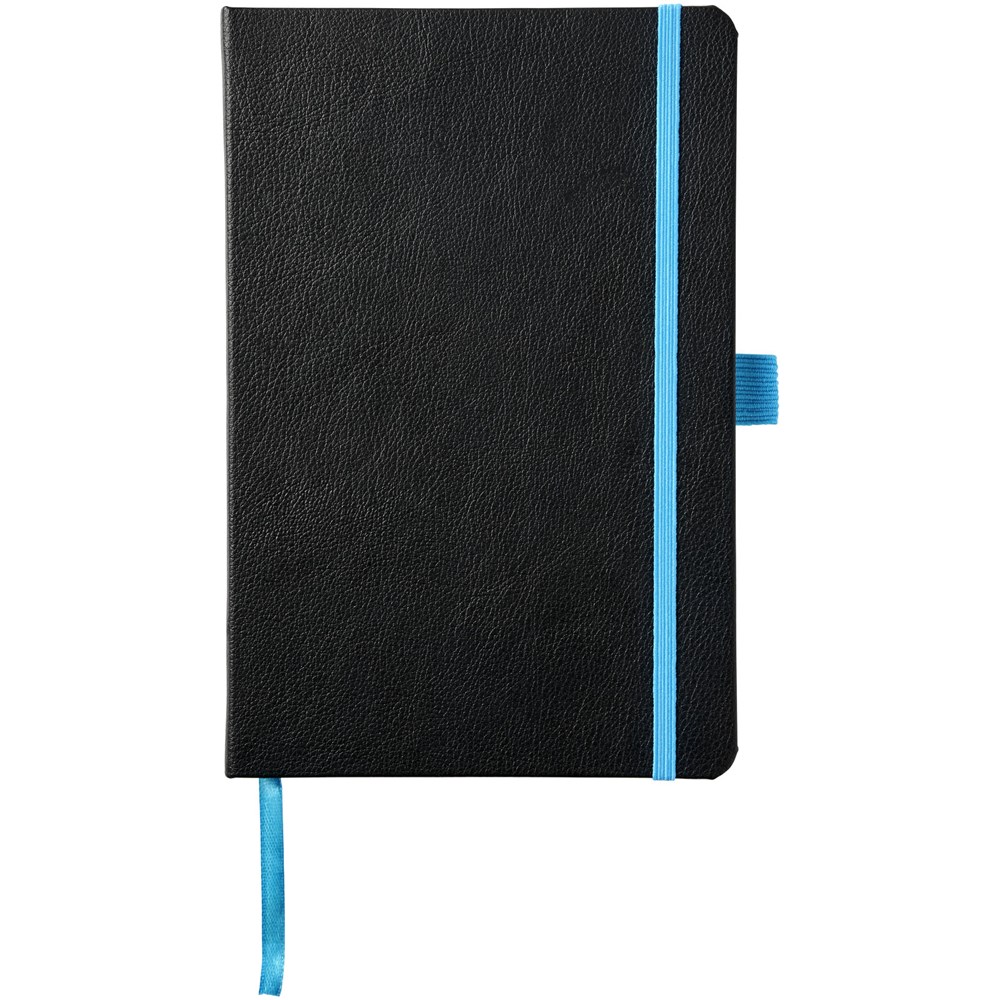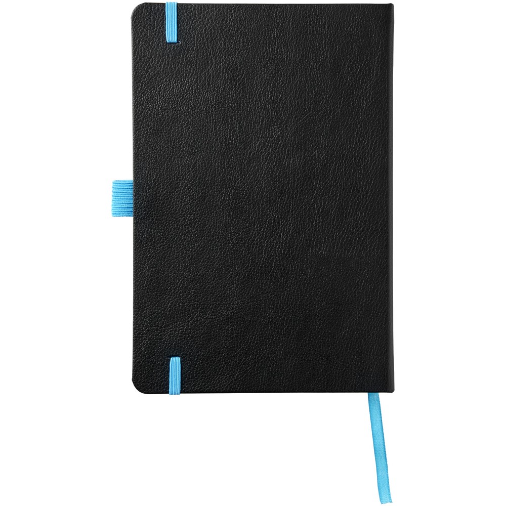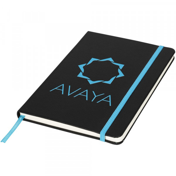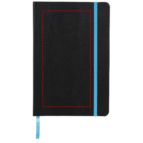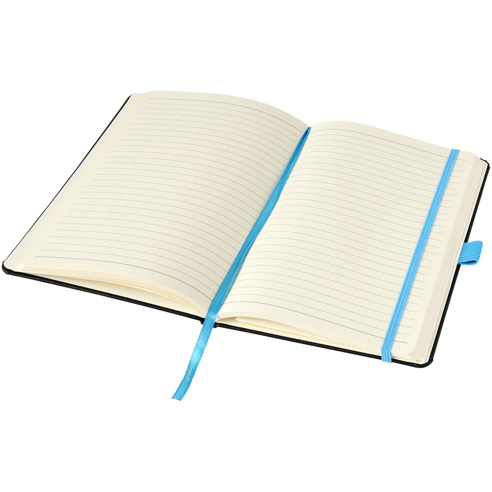 Das gebundene Notizbuch im A5-Format zeigt Ihr Logo oder Ihre Marke in blau, rot, grün oder gelb nach einer Lasergravur. Inklusive einem farblich passenden elastischen Verschluss, einem Band-Lesezeichen und einer elastische Stiftschlaufe. 80 g/m², 80 Blatt cremefarbenes liniertes Papier. Es verfügt auch über eine erweiterbare Tasche auf der Rückseite, um kleine Notizen zu verstauen. Verpackt in einer Hülle.