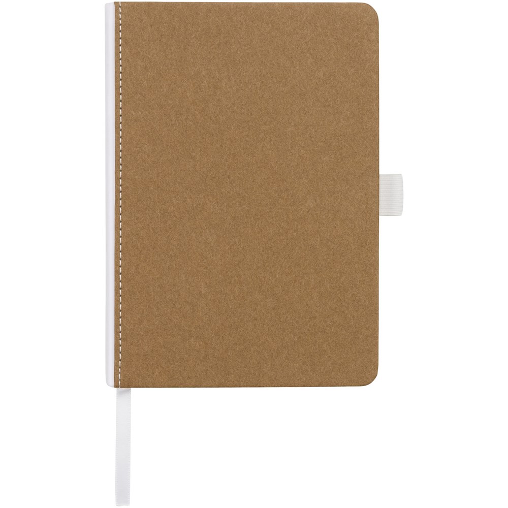 Notizbuch aus Pappe im natürlichen Look mit Stoffrücken. Mit 80 blanko Blättern (70 g/m²), Leseband und Stiftschlaufe.
