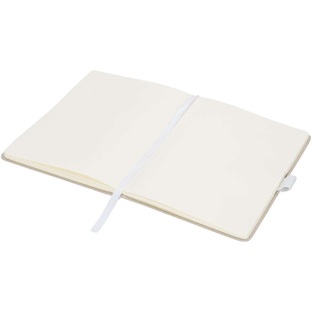 Notizbuch aus Pappe im natürlichen Look mit Stoffrücken. Mit 80 blanko Blättern (70 g/m²),... mehr