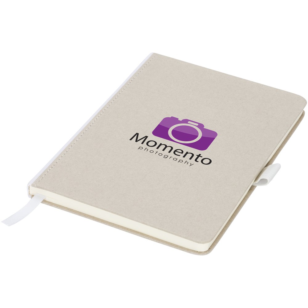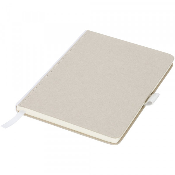 Notizbuch aus Pappe im natürlichen Look mit Stoffrücken. Mit 80 blanko Blättern (70 g/m²), Leseband und Stiftschlaufe.