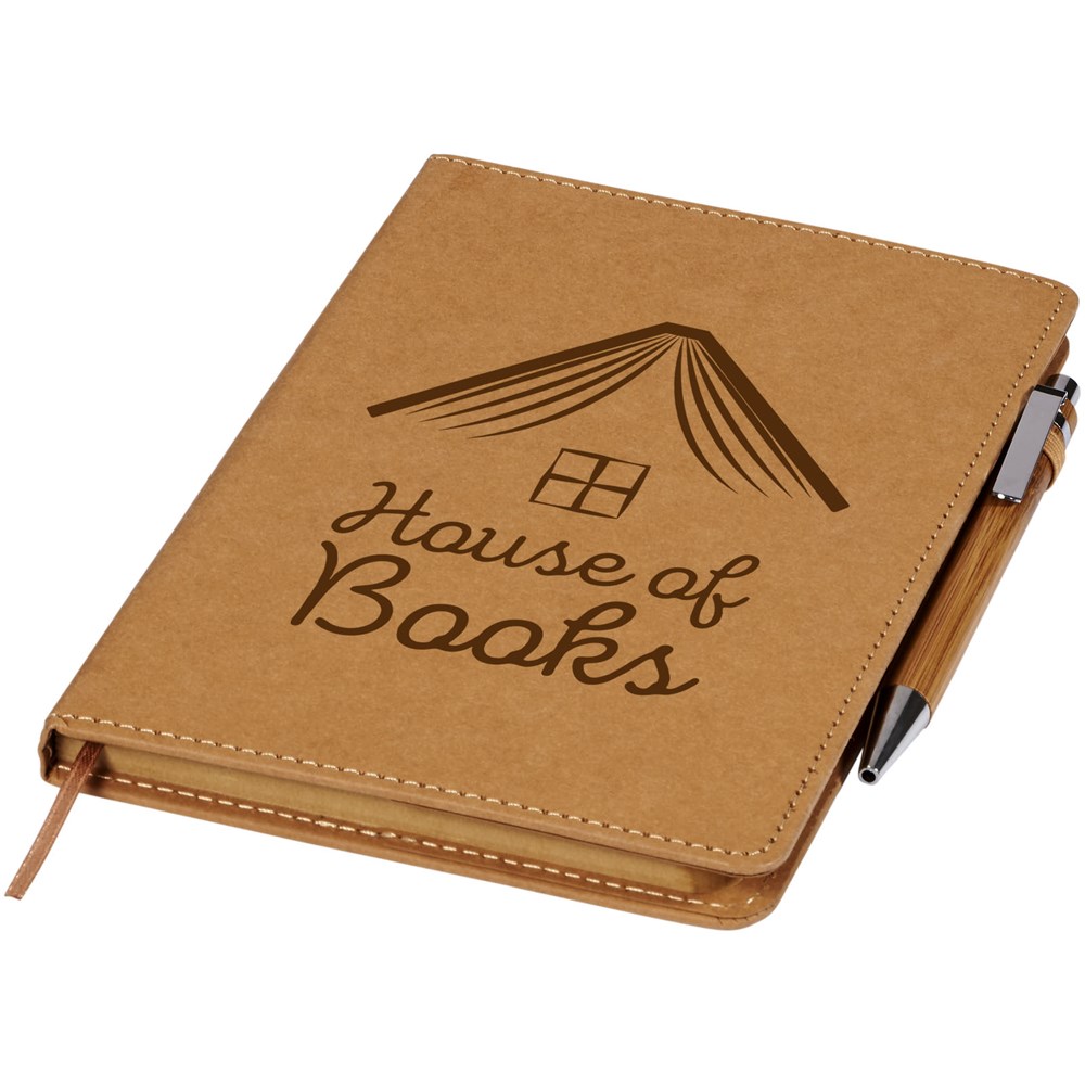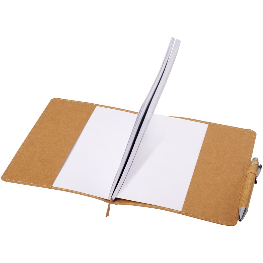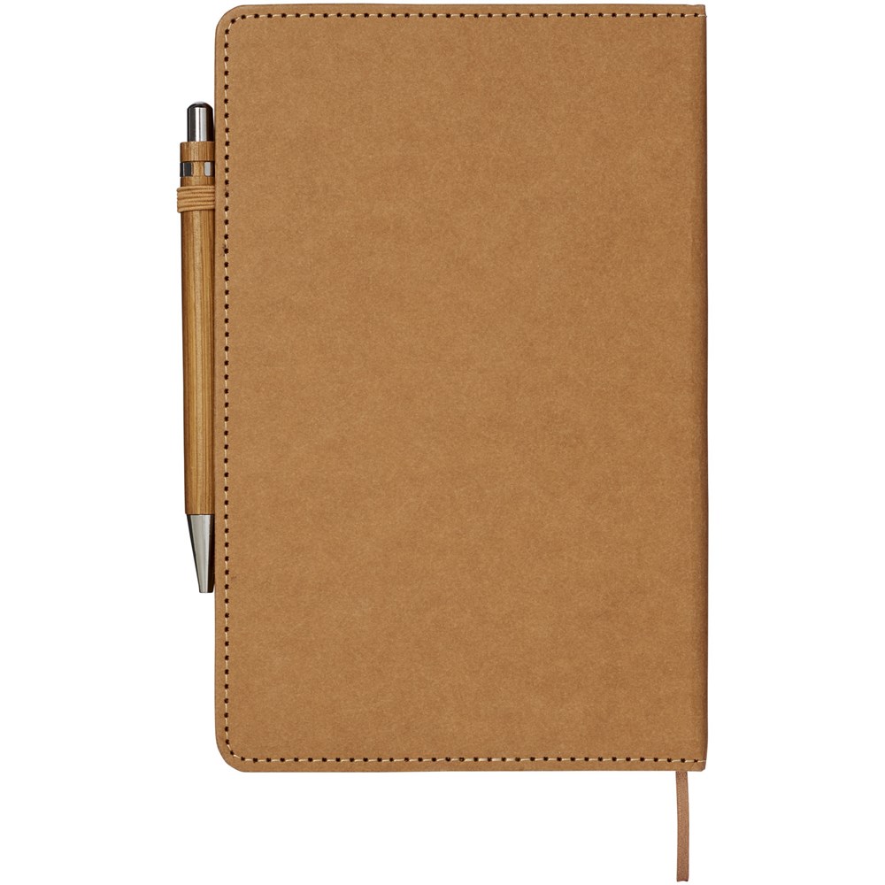 Notizbuch mit Bezug aus waschbarem Bastelmaterial, das wie Papier aussieht, sich wie Papier anfühlt, aber wasserdicht, langlebig, robust und langlebig ist. Eine praktische Größe für diejenigen, die lieber ein kleineres Notizbuch verwenden. Inklusive Bambus-Kugelschreiber mit schwarzer Tinte.