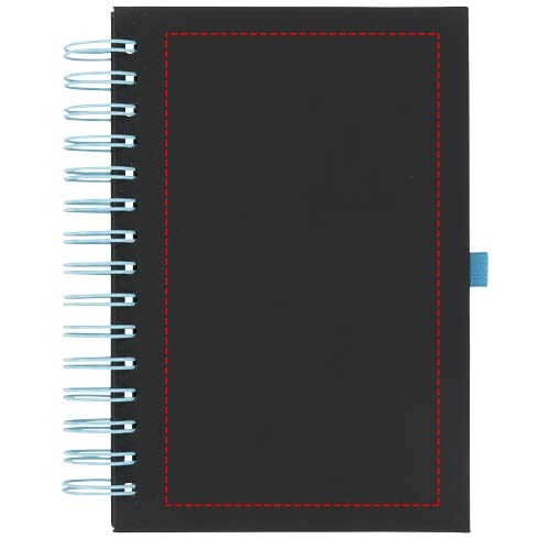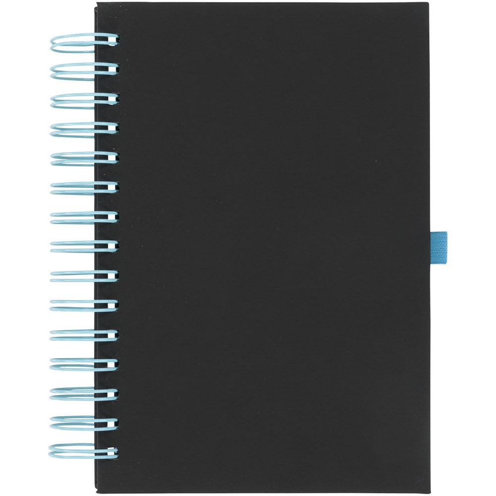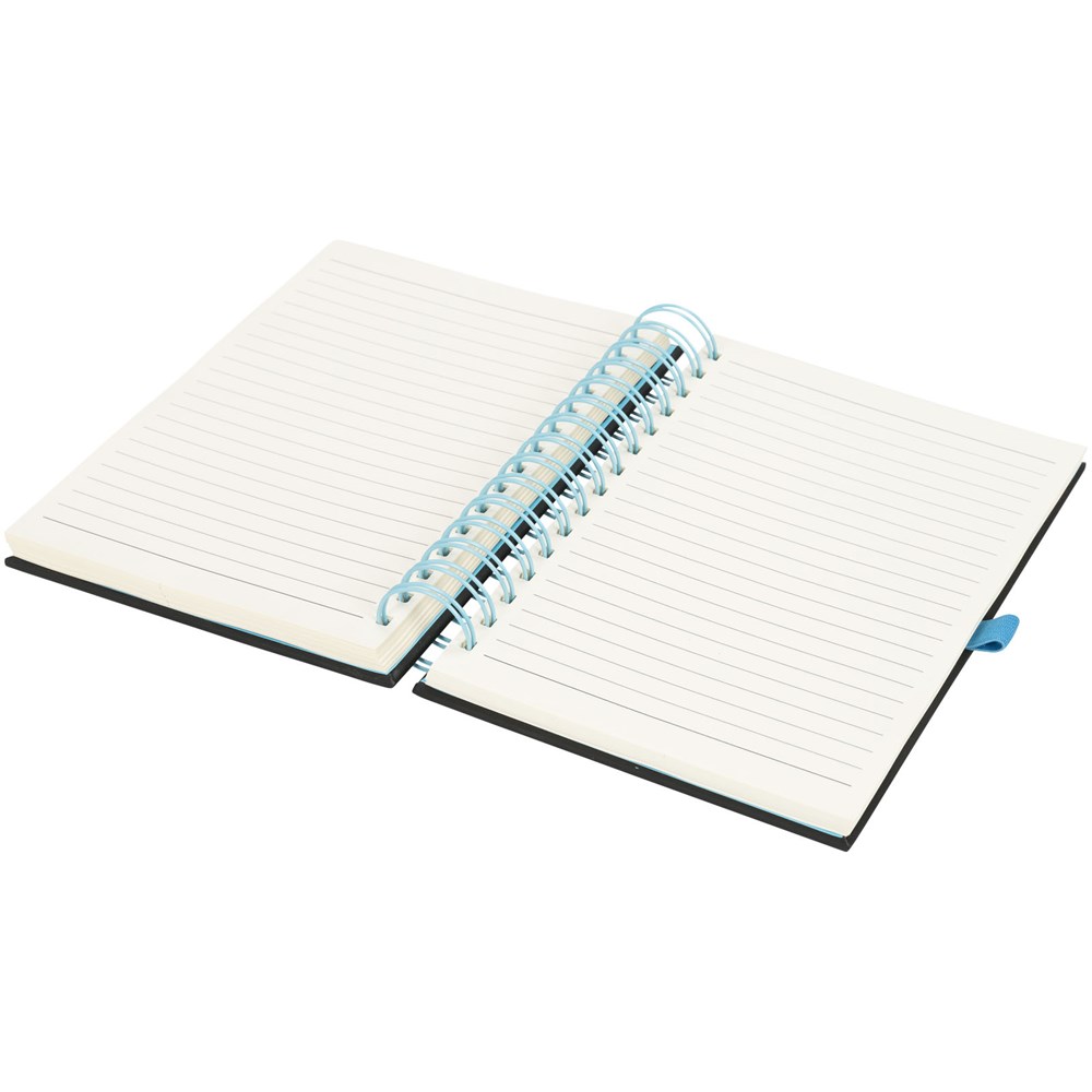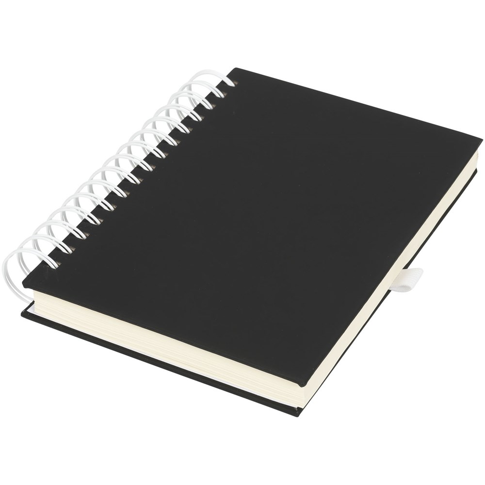 Eine Neuheit in unserem beliebten Notizbuchsortiment. Dieses vielseitige neue Notizbuch hat einen glatten schwarzen PU-Einband mit Spiraldraht in kräftigen Farben und passender Stiftschlaufe. Mit 160 Blatt (70 g/m²) cremefarbigem liniertem Papier.