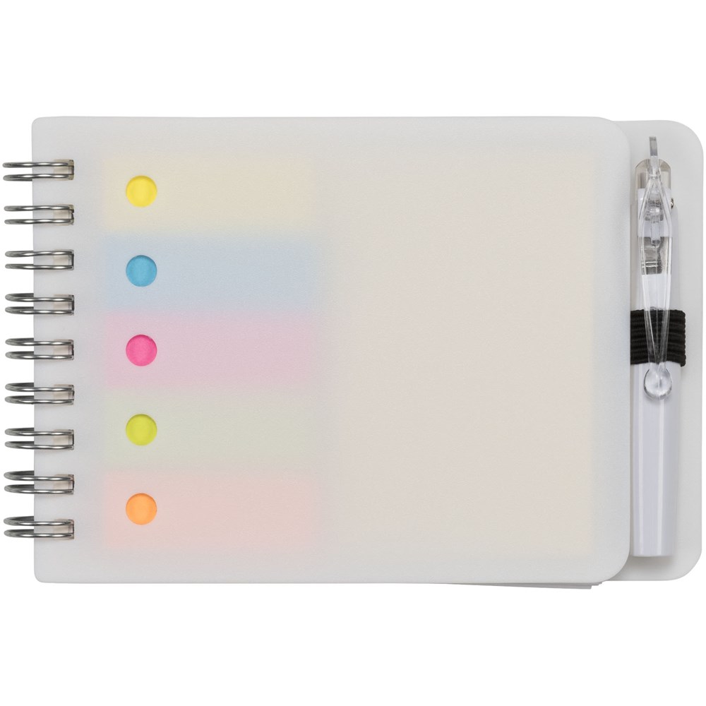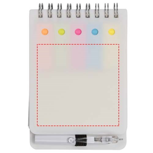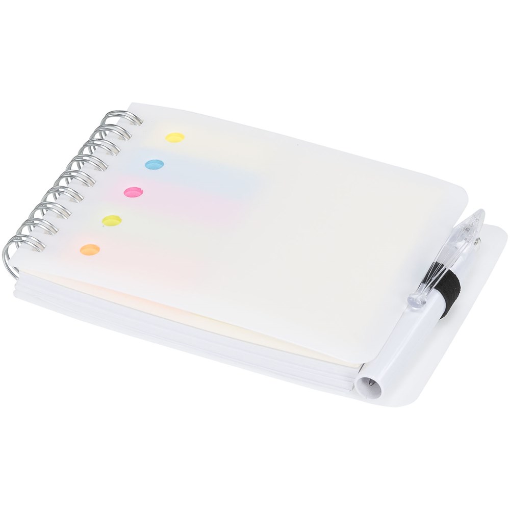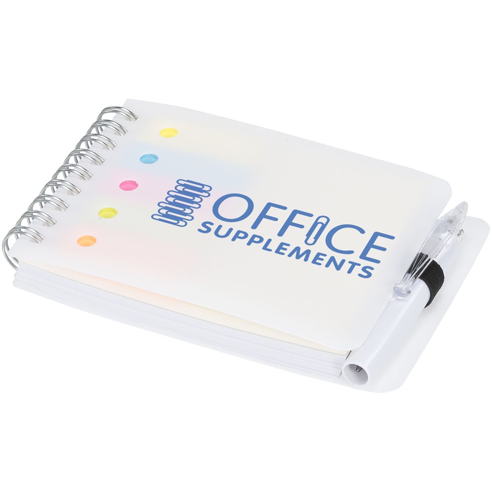 Das Kent Notizbuch wird sicher ein unerlässlicher Gegenstand für jeden Empfänger werden. Es enthält Schmierpapier-Blätter, selbstklebende Haftnotizen und Seitenmarkierungen in fünf kräftigen Farben. Es beinhaltet sogar einen kompakten Kugelschreiber in der Farbe des Polypropylen-Einbands.