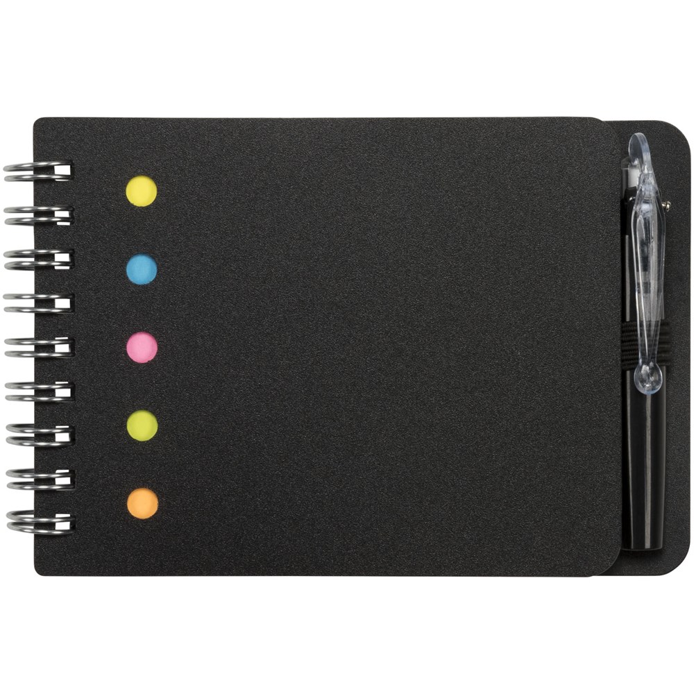 Das Kent Notizbuch wird sicher ein unerlässlicher Gegenstand für jeden Empfänger werden. Es enthält Schmierpapier-Blätter, selbstklebende Haftnotizen und Seitenmarkierungen in fünf kräftigen Farben. Es beinhaltet sogar einen kompakten Kugelschreiber in der Farbe des Polypropylen-Einbands.