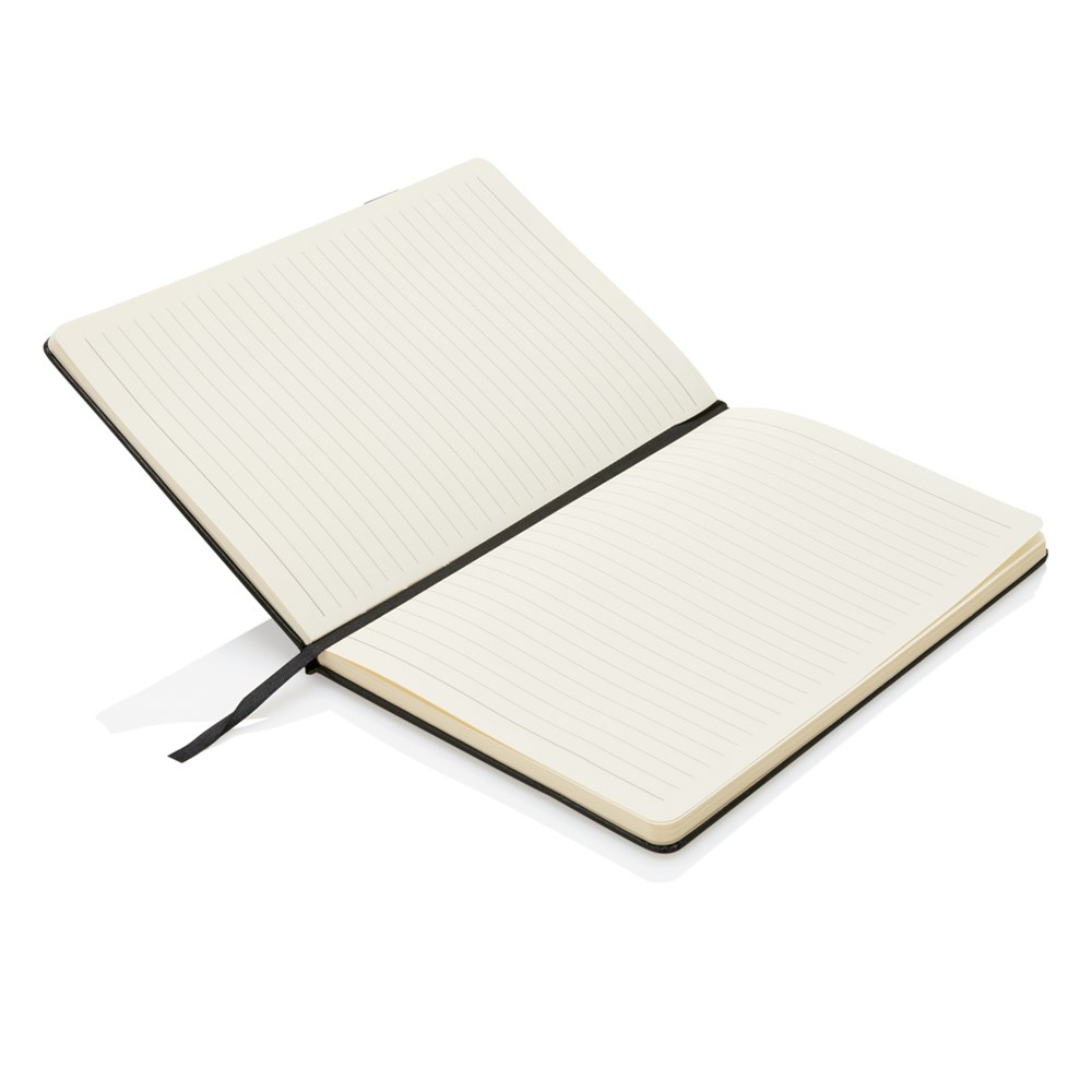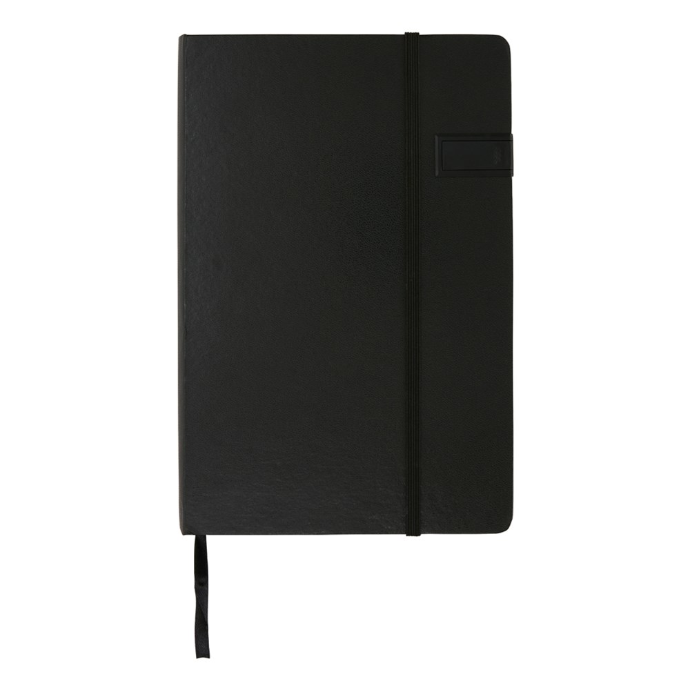 A5 Hardcover Notizbuch mit einem 4GB USB-Stick. Mit Seitentrenner und elastischem Verschlussband. 160 linierte Seiten, 80g/m²