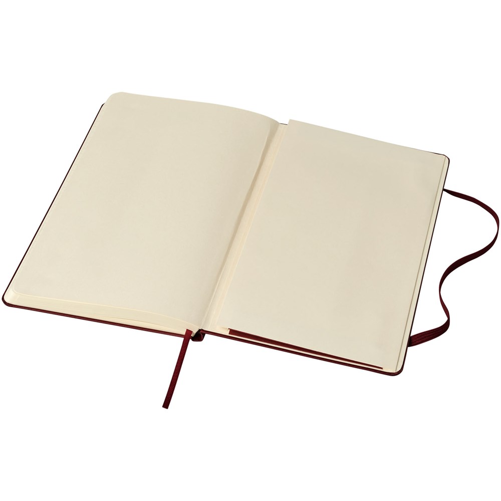 Das Moleskine Classic Hardcover Notizbuch im großen Format (13x21 cm) verfügt über einen kartongebundenen Einband mit abgerundeten Ecken, säurefreiem Papier, einem Lesezeichenband und elastischem Verschluss. Auf der ersten Seite finden Sie Platz für einen Hinweis „bei Verlust“ und zur Belohnung für den Finder. Auf der Rückseite befindet sich eine erweiterbare Innentasche, auf der die Geschichte von Moleskine steht. Die Tasche kann für lose Zettel und Notizen verwendet werden. Enthält 240 elfenbeinfarbene linierte Seiten. Seiten sind auch mit gepunktetem, kariertem und blanko Papier erhältlich. Erhältlich in einer großen Auswahl an stilvollen, lebendigen Farben.