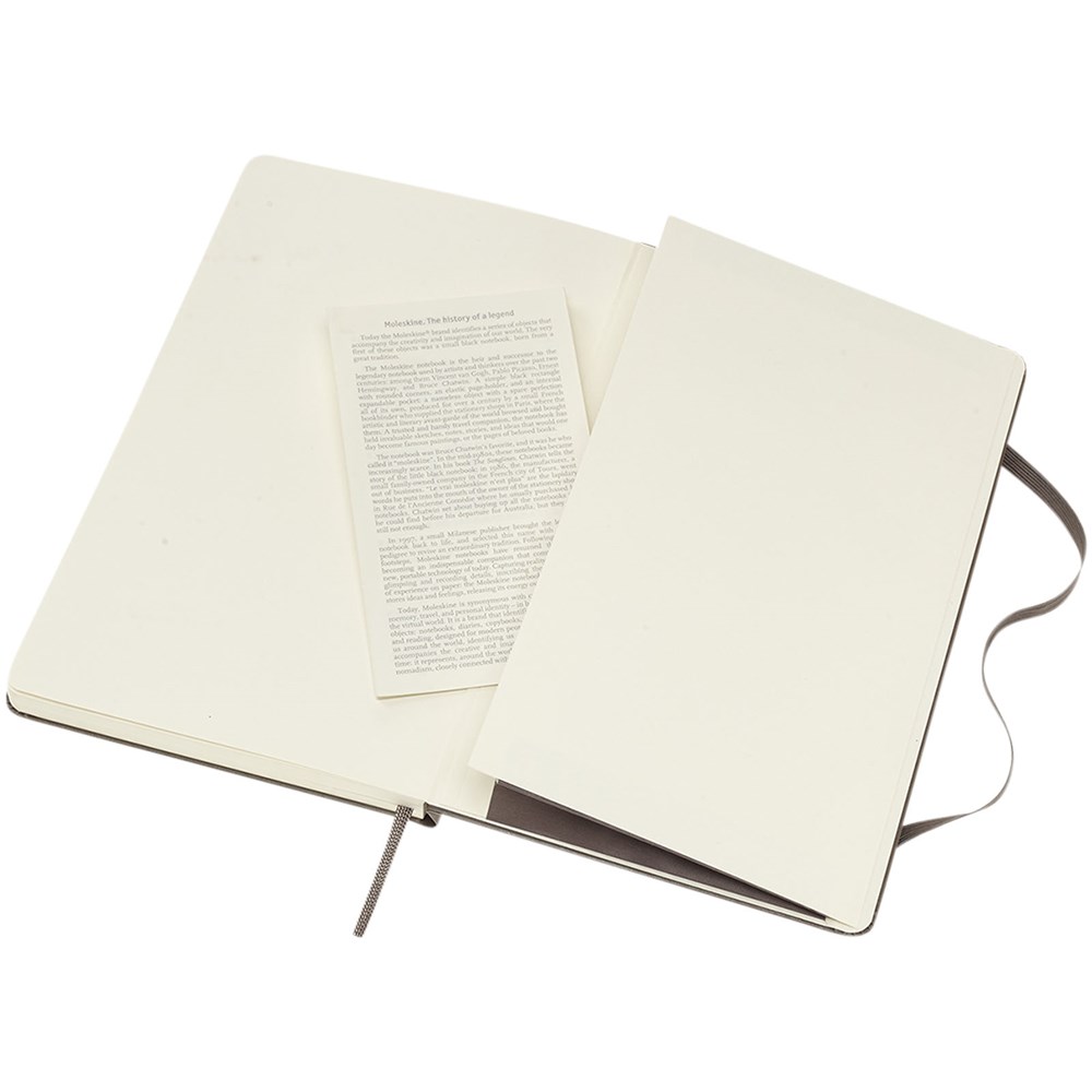 Das Moleskine Classic Hardcover Notizbuch im großen Format (13x21 cm) verfügt über einen kartongebundenen Einband mit abgerundeten Ecken, säurefreiem Papier, einem Lesezeichenband und elastischem Verschluss. Auf der ersten Seite finden Sie Platz für einen Hinweis „bei Verlust“ und zur Belohnung für den Finder. Auf der Rückseite befindet sich eine erweiterbare Innentasche, auf der die Geschichte von Moleskine steht. Die Tasche kann für lose Zettel und Notizen verwendet werden. Enthält 240 elfenbeinfarbene linierte Seiten. Seiten sind auch mit gepunktetem, kariertem und blanko Papier erhältlich. Erhältlich in einer großen Auswahl an stilvollen, lebendigen Farben.