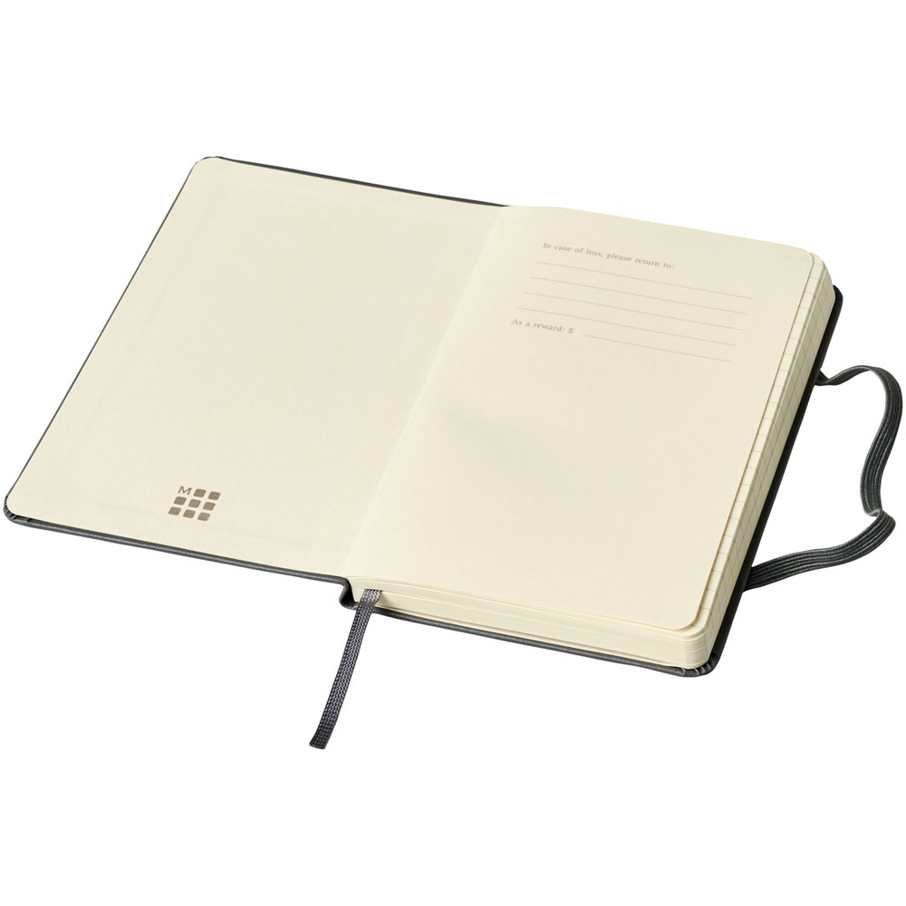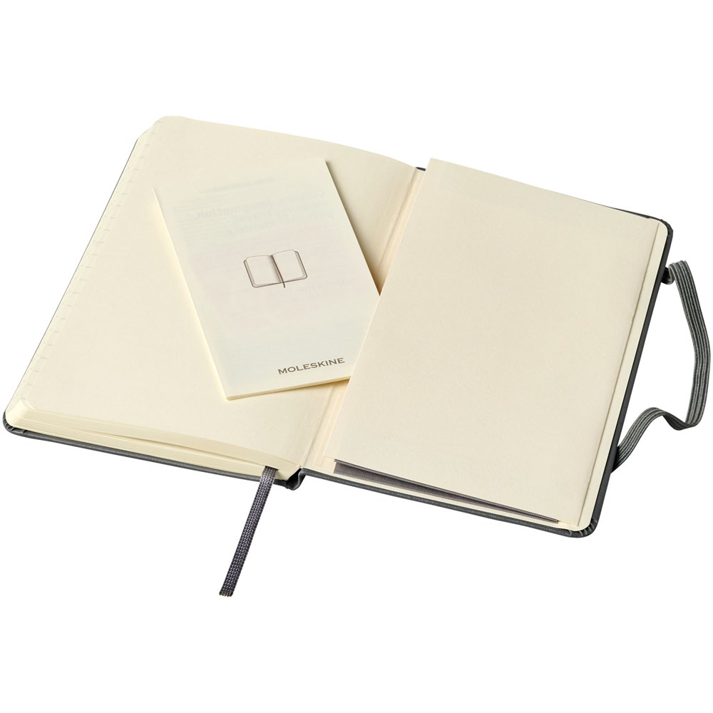 Taschenformat-Version (9x14 cm) des Moleskine Classic Hardcover Notizbuchs. Erhältlich in einer großen Auswahl an stilvollen, lebendigen Farben; mit kartongebundenem Einband mit abgerundeten Ecken, säurefreiem Papier, Lesezeichenband und elastischem Verschluss. Auf der ersten Seite finden Sie Platz für einen Hinweis „bei Verlust“ und zur Belohnung für den Finder. Auf der Rückseite befindet sich eine erweiterbare Innentasche, auf der die Geschichte von Moleskine steht. Die Tasche kann für lose Zettel und Notizen verwendet werden. Enthält 192 elfenbeinfarbene linierte Seiten. Diese Version ist auch mit unbedrucktem, kariertem und liniertem Papier erhältlich.