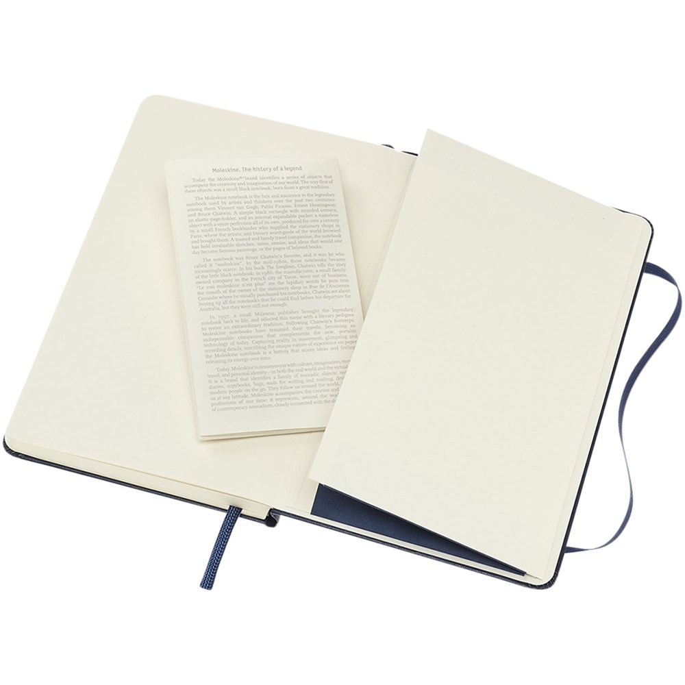 Taschenformat-Version (9x14 cm) des Moleskine Classic Hardcover Notizbuchs. Erhältlich in einer großen Auswahl an stilvollen, lebendigen Farben; mit kartongebundenem Einband mit abgerundeten Ecken, säurefreiem Papier, Lesezeichenband und elastischem Verschluss. Auf der ersten Seite finden Sie Platz für einen Hinweis „bei Verlust“ und zur Belohnung für den Finder. Auf der Rückseite befindet sich eine erweiterbare Innentasche, auf der die Geschichte von Moleskine steht. Die Tasche kann für lose Zettel und Notizen verwendet werden. Enthält 192 elfenbeinfarbene linierte Seiten. Diese Version ist auch mit unbedrucktem, kariertem und liniertem Papier erhältlich.