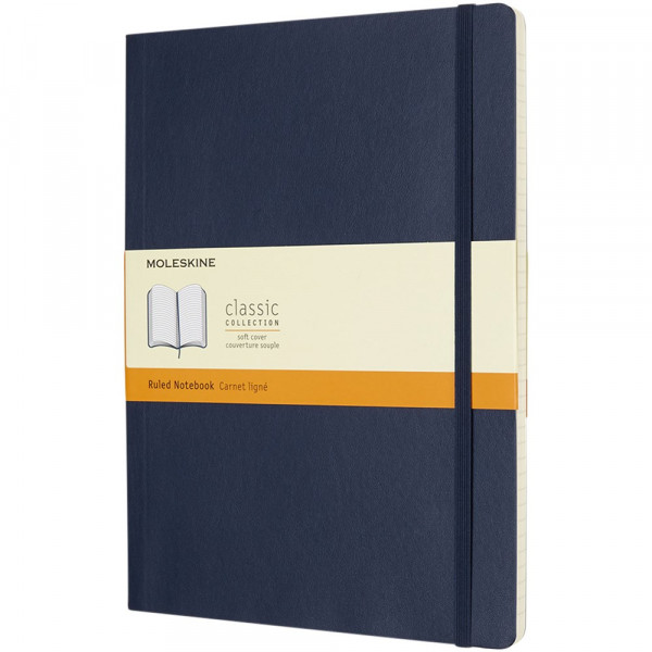 Das Moleskine Classic Notizbuch mit Softcover in Größe XL (19x25 cm) ist in einer großen Auswahl an stilvollen, lebendigen Farben erhältlich. Das Notizbuch verfügt über einen weichen Kartoneinband mit abgerundeten Ecken, säurefreies Papier, Lesezeichenband und elastischen Verschluss. Auf der ersten Seite finden Sie Platz für einen Hinweis „bei Verlust“ und zur Belohnung für den Finder. Auf der Rückseite befindet sich eine erweiterbare Innentasche, auf der die Geschichte von Moleskine steht. Die Tasche kann für lose Zettel und Notizen verwendet werden. Enthält 192 elfenbeinfarbene linierte Seiten. Diese Version ist auch mit gepunktetem, kariertem und weißem Papier erhältlich.