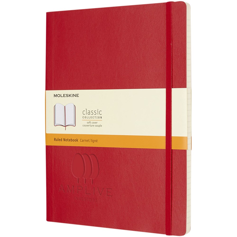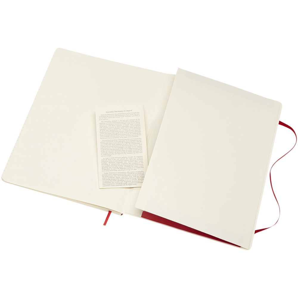 Das Moleskine Classic Notizbuch mit Softcover in Größe XL (19x25 cm) ist in einer großen Auswahl an stilvollen, lebendigen Farben erhältlich. Das Notizbuch verfügt über einen weichen Kartoneinband mit abgerundeten Ecken, säurefreies Papier, Lesezeichenband und elastischen Verschluss. Auf der ersten Seite finden Sie Platz für einen Hinweis „bei Verlust“ und zur Belohnung für den Finder. Auf der Rückseite befindet sich eine erweiterbare Innentasche, auf der die Geschichte von Moleskine steht. Die Tasche kann für lose Zettel und Notizen verwendet werden. Enthält 192 elfenbeinfarbene linierte Seiten. Diese Version ist auch mit gepunktetem, kariertem und weißem Papier erhältlich.