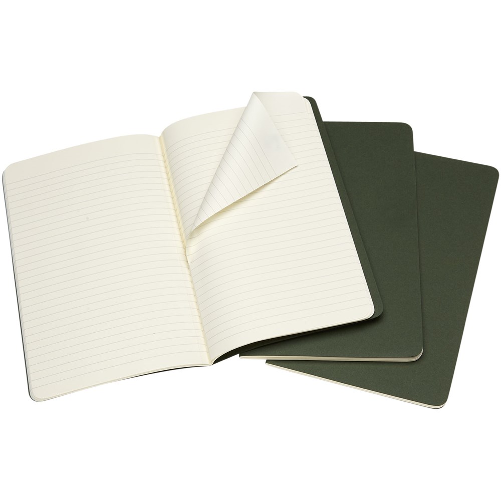Mit Cover aus Karton und abgerundeten Ecken. Sichtbare Nähte auf dem Rücken, mit Innentasche zum Sammeln von losen Notizen. Enthält 80 70 g/m² elfenbeinfarbene linierte Seiten. Die letzten 16 Blätter sind heraustrennbar. Seiten sind auch mit gepunktetem, kariertem und blanko Papier erhältlich.
