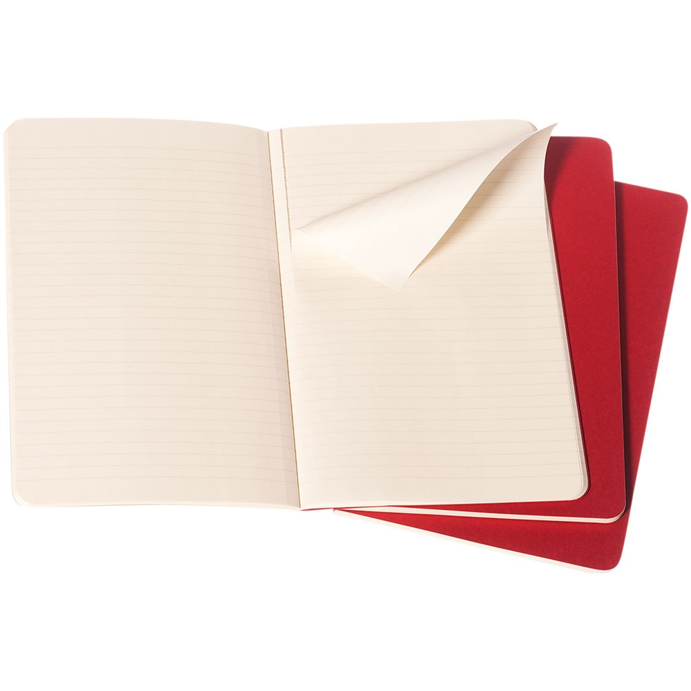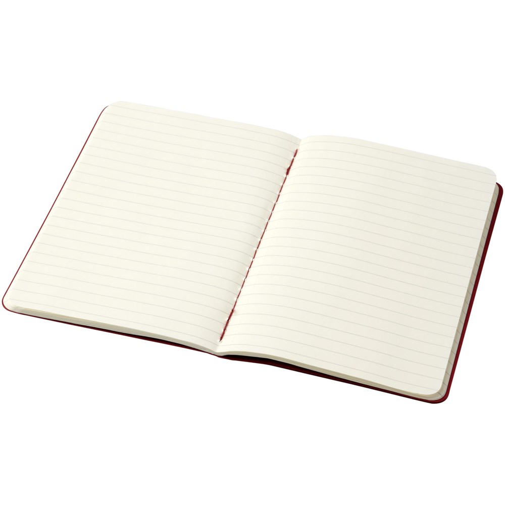 Mit Cover aus Karton und abgerundeten Ecken. Sichtbare Nähte auf dem Rücken, mit Innentasche zum Sammeln von losen Notizen. Enthält 64 70 g/m² elfenbeinfarbene linierte Seiten. Die letzten 16 Blätter sind heraustrennbar. Seiten sind auch mit gepunktetem, kariertem und blanko Papier erhältlich.