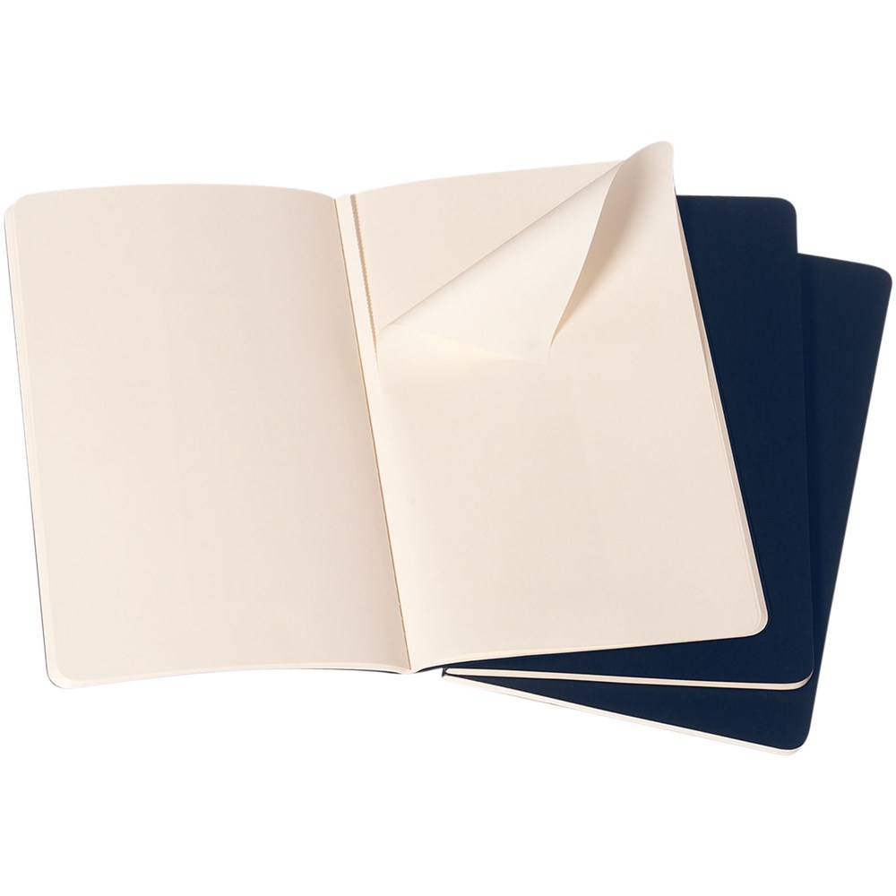 Mit Cover aus Karton mit abgerundeten Ecken. Sichtbare Nähte auf dem Rücken, mit Innentasche zum Sammeln von losen Notizen. Enthält 80 70 g/m², elfenbeinfarbene, unbedruckte Seiten. Die letzten 16 Blätter sind heraustrennbar. Die Seiten sind auch mit liniertem, gepunktetem und kariertem Papier erhältlich.