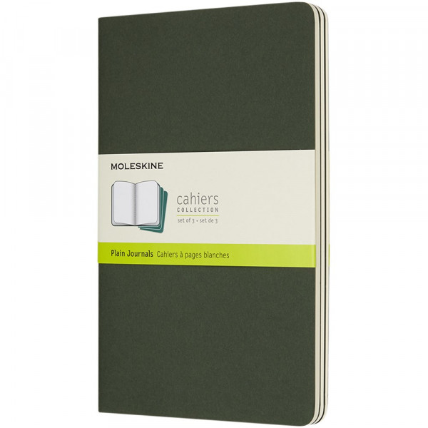 Mit Cover aus Karton mit abgerundeten Ecken. Sichtbare Nähte auf dem Rücken, mit Innentasche zum Sammeln von losen Notizen. Enthält 80 70 g/m², elfenbeinfarbene, unbedruckte Seiten. Die letzten 16 Blätter sind heraustrennbar. Die Seiten sind auch mit liniertem, gepunktetem und kariertem Papier erhältlich.